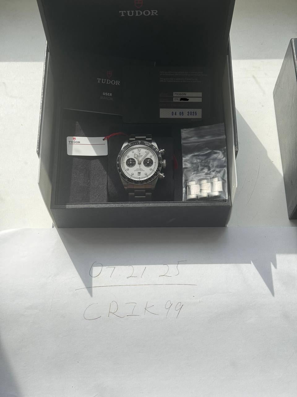 Hello there, Tudor Black Bay Chrono Panda 79360 bought 2025 in excellent condition. I feel like they just don't have enough time on my wrist. Comes with box, papers, warranty card (official Tudor warranty NFC card), and 3 spare links. I am asking $2700 insured shipping to CONUS included. No trades this time.