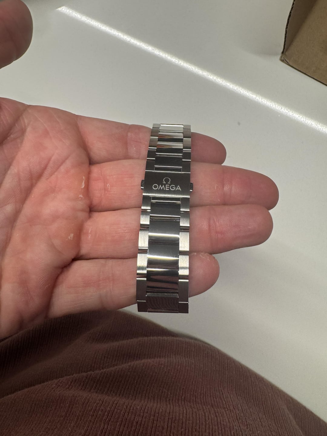 Brand new in box, asking $5K even, but willing to negotiate. Will cover (USPS insured) shipping costs within continental United States and will supply the tracking and label immediately. I accept PayPal, Zelle, or Venmo. Able to provide video or answer if questions you may have, feel free to PM me. Based in the United States. Timestamp included in photos. *Details from Omega:* The Seamaster Aqua Terra is a superb tribute to OMEGA’s rich maritime heritage. In this 41mm model, the symmetrical case has been crafted from stainless steel, with a wave-edged design featured on the back. The green dial is sun-brushed and is distinguished by a horizontal “teak” pattern which is inspired by the wooden decks of luxury sailboats. There is also a date window at 6 o'clock and rhodium-plated hands and indexes filled with white Super-LumiNova. Presented on a polished and brushed bracelet, this timepiece is powered by the OMEGA Master Chronometer calibre 8900, certified at the industry’s highest standard by the Swiss Federal Institute of Metrology (METAS). Reference: 220.10.41.21.10.001 Between lugs Open Case Measurement Modal: 20 mm Lug‑to‑lug Open Case Measurement Modal: 47.9 mm Thickness Open Case Measurement Modal: 13.2 mm Case diameter Open Case Measurement Modal: 41 mm Crystal: Domed scratch‑resistant sapphire crystal with anti‑reflective treatment on both sides Caliber: Omega 8900