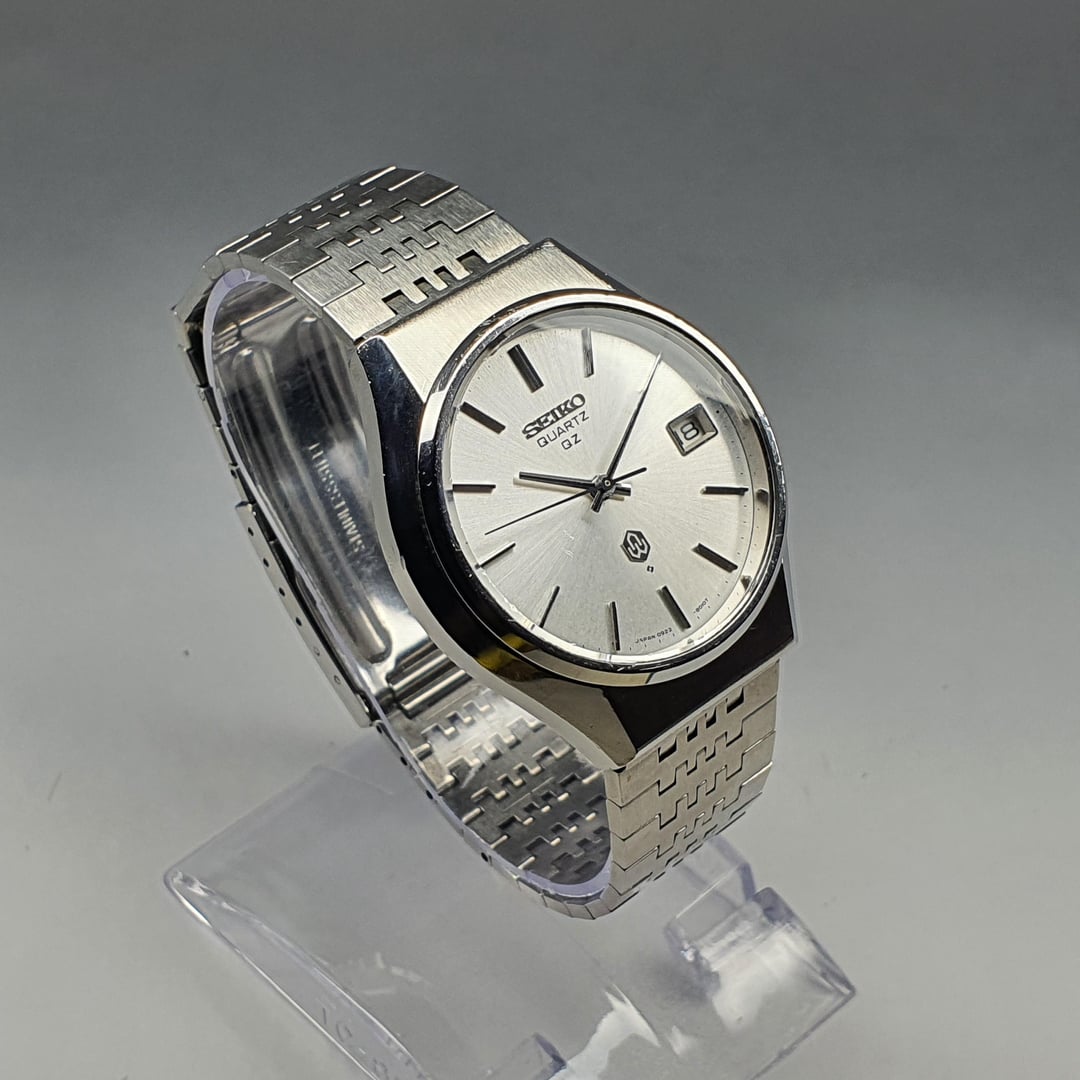 For sale is this vintage Seiko "09QZ" (0922-8010), made in Japan in January 1975. The "QZ" range were some of the first early quartz models made only for the Japanese domestic market to come from Seiko along with the "QR" and "QT" ranges when quartz was all the rage being the new technology in horology. "QZ" models were even priced higher than the Grand Seiko's of the same time and being sold for the equivalent of roughly $800 today, adjusted for inflation. This was all before quartz became affordable so they were all made to very high standards. This example, reference number QMT020, has real heft and does not feel cheap at all. The design is clean and simple yet executed well. It's part of a long line of watches that follow the same design cues (specifically the case shape, hidden lugs and brushed centre surface) developed by Seiko for decades now. The dial is a beautiful silvery white sunburst with very thin stick baton indices that are high-polish on the sides but with a black top surface. The hands follow suit with their thinness and being high-polish with a black stripe down the centre. The Seiko logo and single crystal quartz symbol are applied. The minute track, and print are in black. The date is neatly framed and I particularly like the microgramma-style font. The Suwa swirl symbol under the single crystal quartz symbol and on the case back indicates the watch was designed and manufactured in the Suwa factory during its fierce rivalry with the Daini factory. As mentioned earlier, the case design is one that has seen various iterations throughout the decades but remains a classic Seiko case profile with its hidden lugs and effective brushed centre and polished sides. The brushed centre lines up satisfyingly with the bracelet. The calibre 0922 movement is an over-engineered movement that is far more beautiful than the vast majority of quartz movements today. The watch comes with the original Seiko bracelet; a high-quality bracelet with solid links that can accommodate a wrist of up to roughly 19cm. In the 5th/6th pictures where the bracelet is kinked, please note that there is no problem with it, just that the clasp is pushing it into that angle due to the watch stand and that link articulates the same as the rest of the links. The watch is in great condition for its age being 50 years old! General wear is expected. Dimensions are: 35.7mm x 40.1mm x 11.1mm Lug Width 18mm Bought in Japan. Looking for $170 net (buyer pays Paypal fee) International Tracked Shipping $10 More pics: [https://flic.kr/s/aHBqjCn2Mp](https://flic.kr/s/aHBqjCn2Mp) \*Returns accepted but all return postage costs are the buyer's responsibility in all circumstances.