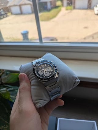 Hello all,  Here to sell my Timex Q Chronograph Blue (TW2W51600). A lovely and affordable sports chronograph, I’ve decided to part ways with it as I have my eye on other chronographs. 40mm width, 13.5 mm thickness, and \~46mm lug-to-lug with an integrated bracelet design. Note that I have it on an aftermarket bracelet designed for Casios (w/ all links included), and it fits like a dream. I’ll also include the original bracelet, but I seem to have lost the spare links, so unless your wrist is as small as mine (\~6.25”/16cm) then the original bracelet likely won’t fit.  I’m asking for **$120** **shipped CONUS**, PayPal F&F preferred. Thanks for looking!