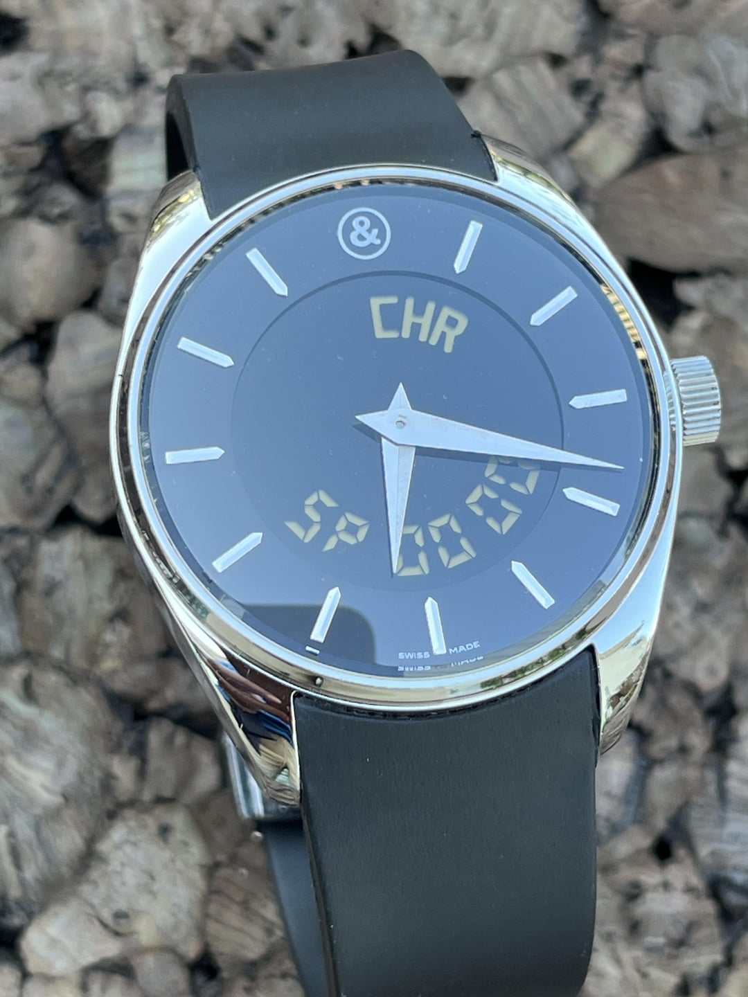 Asking $475 oro (CONUS shipping on me, fees if any on you)  * Measurements: 38mm diameter, 20mm lug width, 45mm lug-to-lug * Other details: Ana-Digi watch (Movement: ETA 988.431, anti-magnetic and shock-resistant.  Variations of the [988.xxx](http://988.xxx) are also used in the Omega Seamaster Multifunction and the Breitling Aerospace).  Same case is used in the Bell & Ross Geneva and Vintage 123 watches of the same era.  This one is polished like the Geneva 123 series, and has two sets of lug holes, for straight and curved spring bars. * Digital display can be set to indicate: * \--- Alarm * \--- Chronograph (Split and Add modes) * \--- 2^(nd) TimeZone (can be set to half hour offsets) * \--- Count-down Timer * \--- Day/Date * \--- Seconds/Date * \--- Home Time * \--- Off * Analog display is hours and minutes, with the ability to “sync” the hands to the digital Home Time (or if you choose, be different), minute hand moves at the 30 second and full minute mark. * Reviews: [https://www.pkshiu.com/review/20083/bell-ross-fusion-watch-review](https://www.pkshiu.com/review/20083/bell-ross-fusion-watch-review) and [https://forums.timezone.com/index.php?t=tree&th=560&mid=560](https://forums.timezone.com/index.php?t=tree&th=560&mid=560) *   * Includes * \--- Watch * \--- on OEM rubber strap and deployant * \--- velvet padded Bell & Ross service case *   * I’m a private collector slimming my collection down and have 100+ transactions on WatchExchange – and I’m happy to talk to you on the phone or FaceTime once you are sure you’d like to proceed.  Straight sale strongly preferred and priced to reflect this.  Thank you for reading my post, and thanks also to the Mod community on WatchExchange.