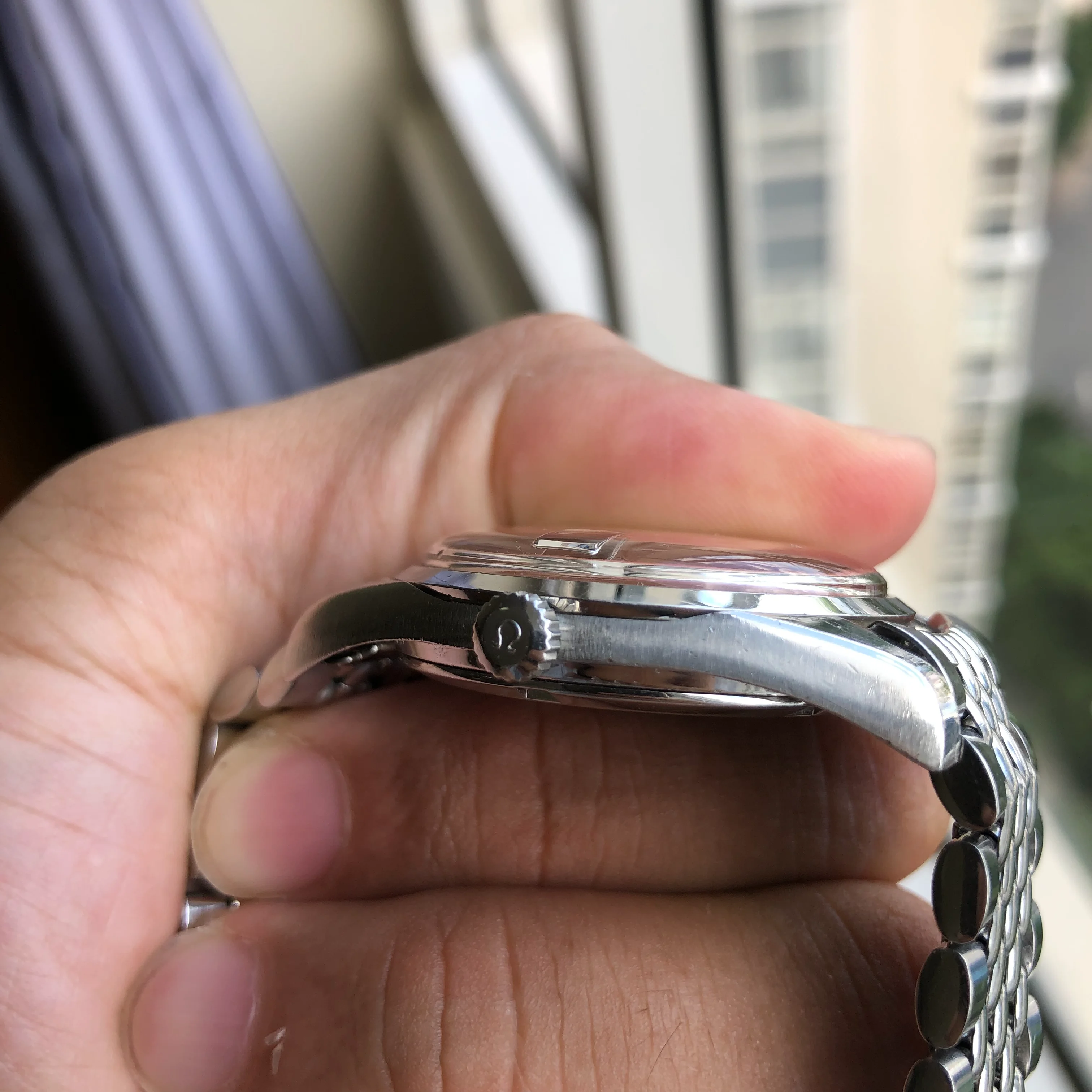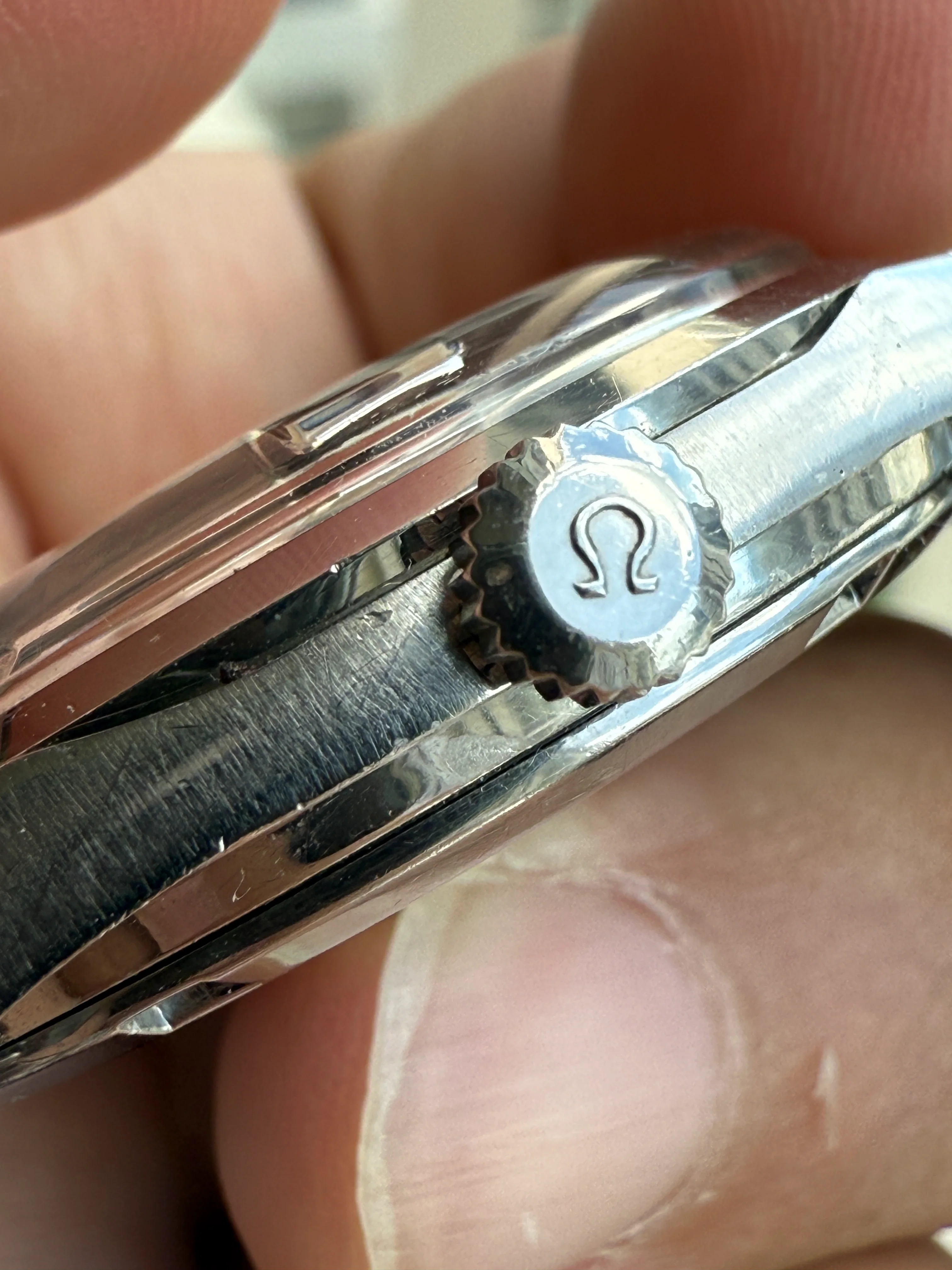 - Case: The diameter is 35mm without the crown. Original case is in good condition with scratches. Original Omega knurled crown.