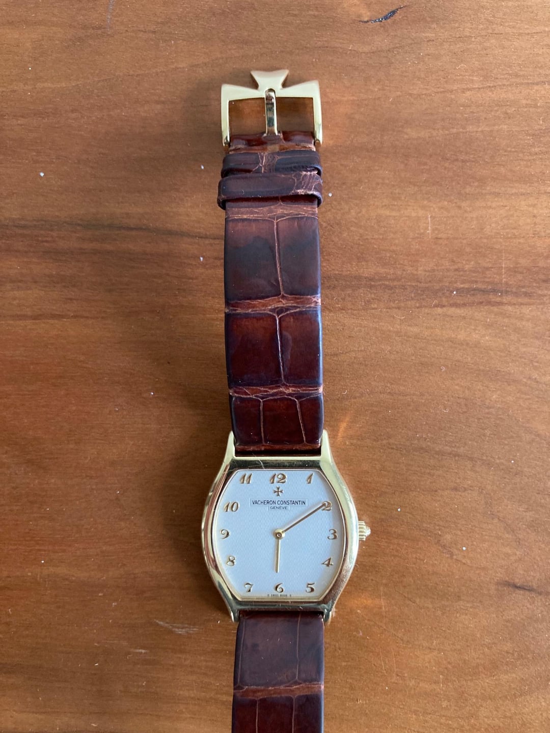 Hi Watch Fam, I have large upcoming expenses and therefore selling core parts of my collection. For sale is an honest and very good conditioned neo vintage Vacheron Constantin Tonneau (or “Tortue”) Guilloche Dial (Ref. 31150) The watch is running and operating well. The manual winding has a nice tactile feel. The watch is in great cosmetic condition but has minor wear marks given that it is a gold watch at the end of the day but there are no notable scratches, dings, scruffs to speak of. It comes with an OEM Vacheron gold buckle as well as an OEM Vacheron crocodile strap. The strap is worn and coming unglued at the longer end, but I kept it on this watch since the strap is so thin and super comfortable. I can provide a new OEM Vacheron crocodile strap for an additional $400 if buyer desires. The watch measures 31.5mm x 41.5mm helping it wear large and similar to a 35mm watch IMO. Pictures of it on my 6.75” wrist are included for your reference. Looking for $8,500. This is a large amount of money so I am happy to have a phone call or facetime prior to purchase. Shipping will be on me if buyer is in continental U.S. Please do not hesitate to reach out with any questions or for further pictures. Payment will only be accepted through wire, venmo or zelle. Exceptions will be made on a case-by-case basis. I will not accept any returns so feel free to ask any questions. I have years of transaction history including dozens of positive transactions feedback on WatchUSeek under Willing86 and a few dozens more here on Reddit, so deal in confidence. Feel free to ask any questions or request more pictures/details! Timestamp: [https://imgur.com/a/0LvrTXd](https://imgur.com/a/0LvrTXd) Pictures: [https://imgur.com/a/qO0hisO](https://imgur.com/a/qO0hisO)