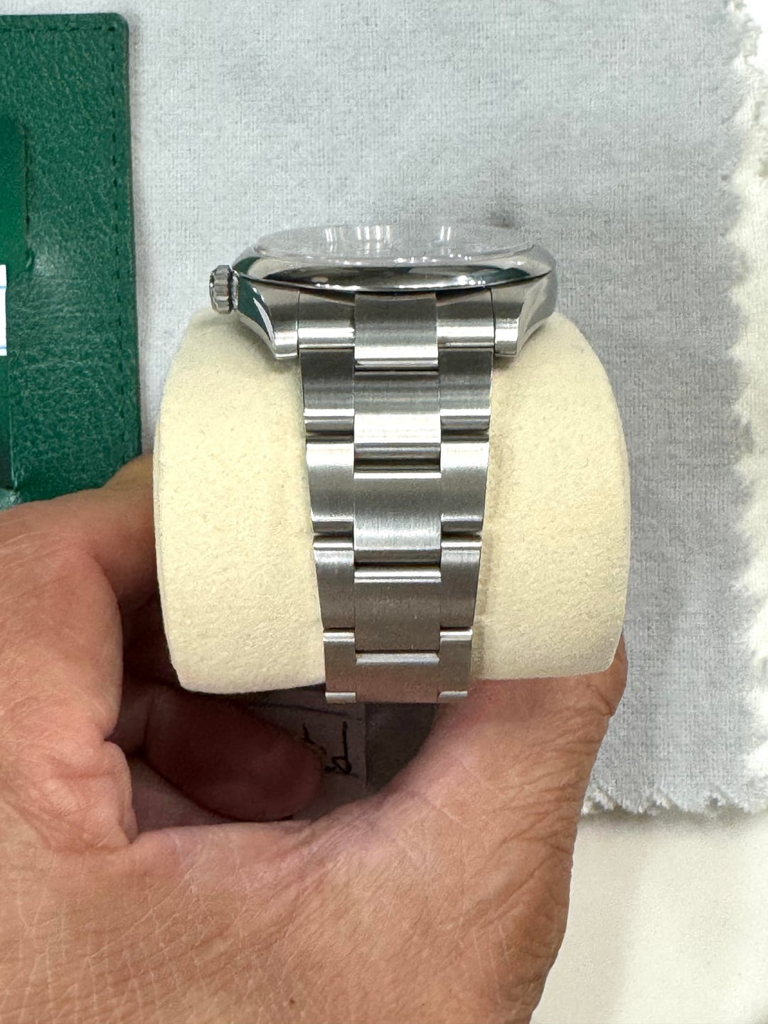 For sale is my excellent condition Rolex OP 41 purchased in June-2025. Powered by the caliber 3230 automatic movement. Excellent condition with 100m of water resistance. I am the original owner and it is Full Kit. From my personal collection. Only a handful of hairline scratches…no regulars scratches, dings or dents of any kind. Easily 9 out of 10. Specs are as follows: * Case width: 41mm (w/o crown) * Lug to lug length: 47.5mm * Lug spacing: 21mm * Thickness: 12mm * Condition: Pre-owned & excellent * Movement: 3230 * WR rating: 100 meters * No trades, Only selling * Purchased June-2025 * Price is firm * Full Kit - Inner & Outer Box, papers, etc..only missing small white tag. * Free Shipping via USPS Priority within CONUS Priced to SELL: $9,500 shipped Payment: Venmo or Zelle (G&S for well established accounts, buyer pays 3.5% fees) Buy with confidence. Currently, 153 perfect transactions on Reddit and counting. Happy to FaceTime with Blue OP in hand. Thumbs up appreciated if you like this post.