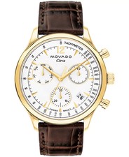 | Movado Heritage Circa Swiss Quartz Chronograph Brown Leather Strap Watch 3650164 ucanfeelthedeal (3494) |