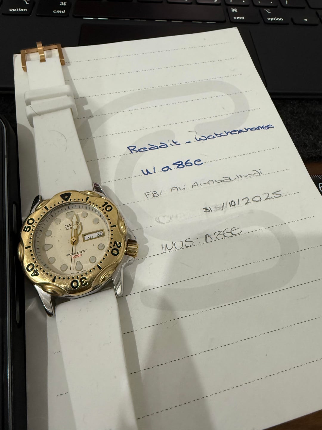 Hey all, Up for sale is my vintage JDM Casio Air Divers 200M . Watch overall in good shape, unpolished on a generic strap. Glass is fairly clean, few chips nothing major Watch case: ~39 mm Watch only Asking price: $175 shipped TYD via UPS or Fedex Not interested in trades Please read the disclaimer before shooting a PM Thanks ⸻ Watch Sale Disclaimer: • I am a private collector, not a store or reseller, and I am not affiliated with any watch brand mentioned in this listing. • The watch will be shipped from Kuwait via FedEx, and a tracking number will be provided to the buyer once dispatched. • Buyer is responsible for any customs duties, VAT, or import taxes that may be charged upon delivery, depending on your country’s regulations. • I welcome all reasonable requests for additional information, including more photos and/or videos to verify the watch and its condition. • Payment terms: • Established Watchexchange members with verifiable feedback may pay via PayPal Goods & Services only, I do not accept Friends & Family nor Zelle • New or low-feedback users must pay via wire transfer. All watches are sold as-is, with details described to the best of my knowledge. Serious inquiries only, please. Thanks for looking