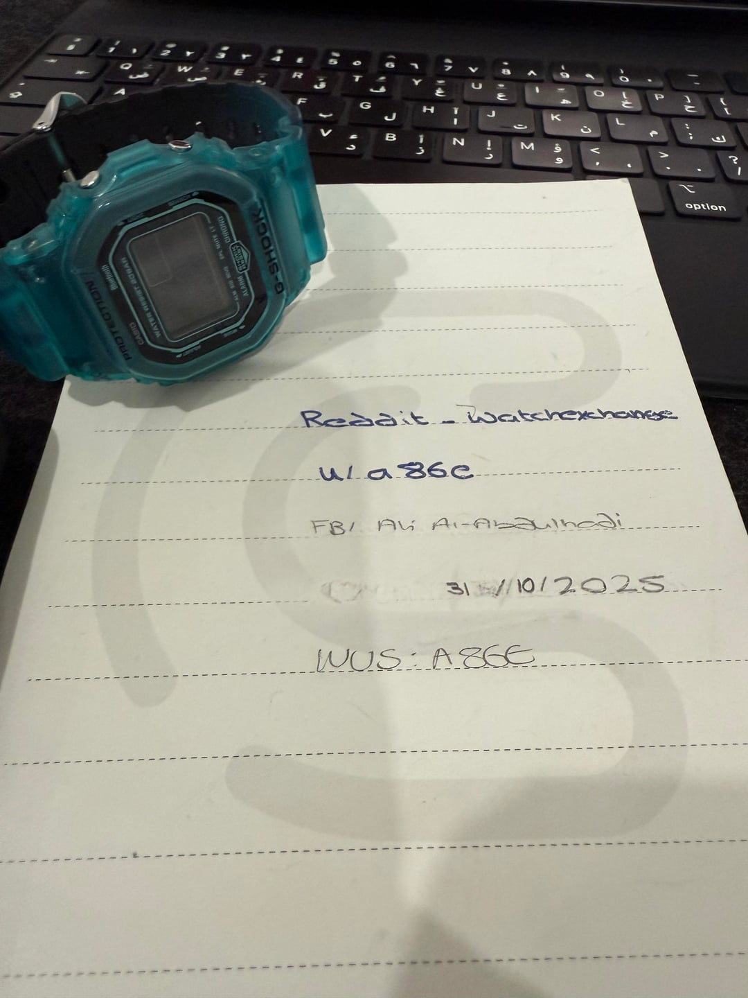 Hey all, Barely worn DW-B5600, watch only. No box Price: $145 shipped TYD via UPS with tracking Not interested in trades Please read the disclaimer before shooting a PM Thanks ⸻ Watch Sale Disclaimer: • I am a private collector, not a store or reseller, and I am not affiliated with any watch brand mentioned in this listing. • The watch will be shipped from Kuwait via FedEx, and a tracking number will be provided to the buyer once dispatched. • Buyer is responsible for any customs duties, VAT, or import taxes that may be charged upon delivery, depending on your country’s regulations. • I welcome all reasonable requests for additional information, including more photos and/or videos to verify the watch and its condition. • Payment terms: • Established Watchexchange members with verifiable feedback may pay via PayPal Goods & Services only, I do not accept Friends & Family nor Zelle • New or low-feedback users must pay via wire transfer. All watches are sold as-is, with details described to the best of my knowledge. Serious inquiries only, please. Thanks for looking