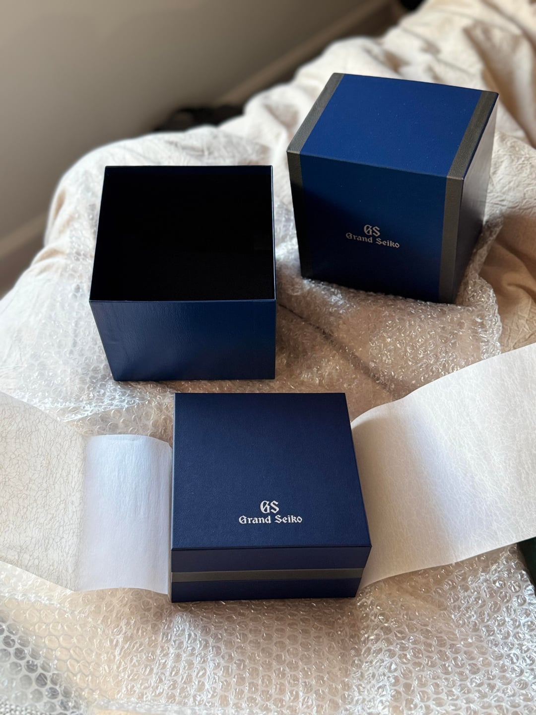 Hello Ladies & Gents, I'm selling my Grand Seiko GMT SGBE209. The watch is in great shape, and i'm selling because I don't really wear the watch. I bought it second hand in early 2023, but have worn it less than 5 times... I bought a Delugs strap that I will include as well. The set includes box, papers, all extra links and an additional leather strap. My wrist is approx 6.5". 39mm Diameter Asking $4,500 + shipping in the CONUS; will send via FedEX with full insurance - or pickup in the DC area. Will consider reasonable offers!
