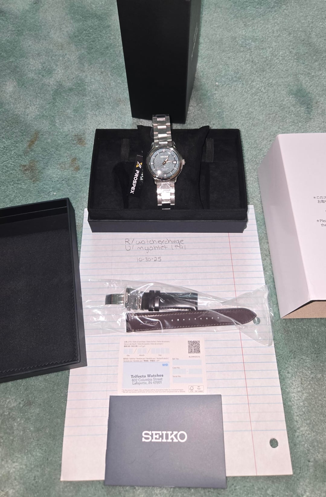 Hey guys I have a brand new SPB289 mystic forest for sale. This has never been worn and its brand new with tags and stickers on it still. It was purchased from trifecta watches with warranty card for 3 years. I am more then happy to get on a video call with anyone . Selling for 695$ plus 25$ for shipping. I will not entertain any other offers thank you. Will entertain trades for 38/39mm divers .