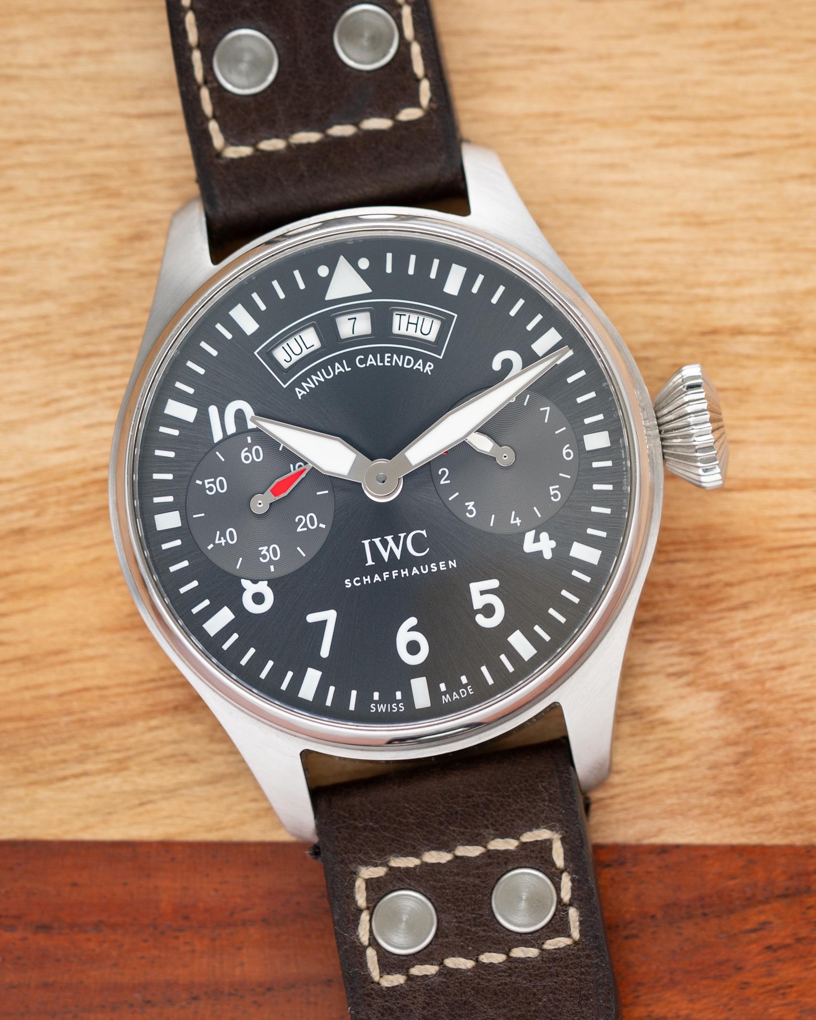 Up for sale is the IWC Big Pilot's Watch Annual Calendar Spitfire in excellent pre-owned condition. In a history going back over 80 years, the Pilot’s Watch family has spawned many models that have long been among IWC’s most iconic models. The Big Pilot’s Watch is one of them – the uncluttered, classically simple dial and triangular index at “12 o’clock”, both typical features of the Pilot’s Watches, are unmistakably modeled on the 1940 original. This BP Annual Calendar was introduced in 2016, pairing IWC's new(-er) annual calendar caliber with the Big Pilot case. The annual calendar shows the month, date and day in three separate windows. The mechanism automatically takes into account the differing lengths of individual months. Unlike a perpetual calendar, however, the annual calendar is unable to make allowance for the leap days in February or the leap years. Once a year, then, at the end of February, it requires manual correction. In the case of IWC’s annual calendar, the correction is made simply, via the crown. Reference: IW502702 Case size: 46mm Lug width: 22mm Movement: IWC Cal. 52850 Power reserve: 7 Days **Condition Notes:** ✔️ Time keeping is excellent without any signification gain or loss. Minor wear marks. **What's Included:** ✔️ Watch on original strap. No box or papers. No service history. **Timestamp and pictures:** [**https://imgur.com/a/u-cubex68-p2Lu1JK**](https://imgur.com/a/u-cubex68-p2Lu1JK) **Priced to sell at $9,250 shipped from Atlanta, GA.** Trade value will be higher. Send complete details of your trade offer outright. Payment by Zelle, Wire, and PayPal (buyer pays the fees)