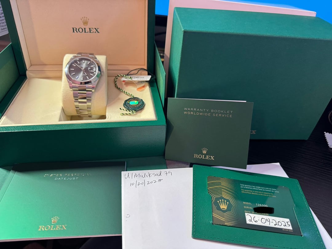 [WTS] ROLEX Datejust 41mm Slate Dial 126300 (4/2025) (Reduced/Repost)