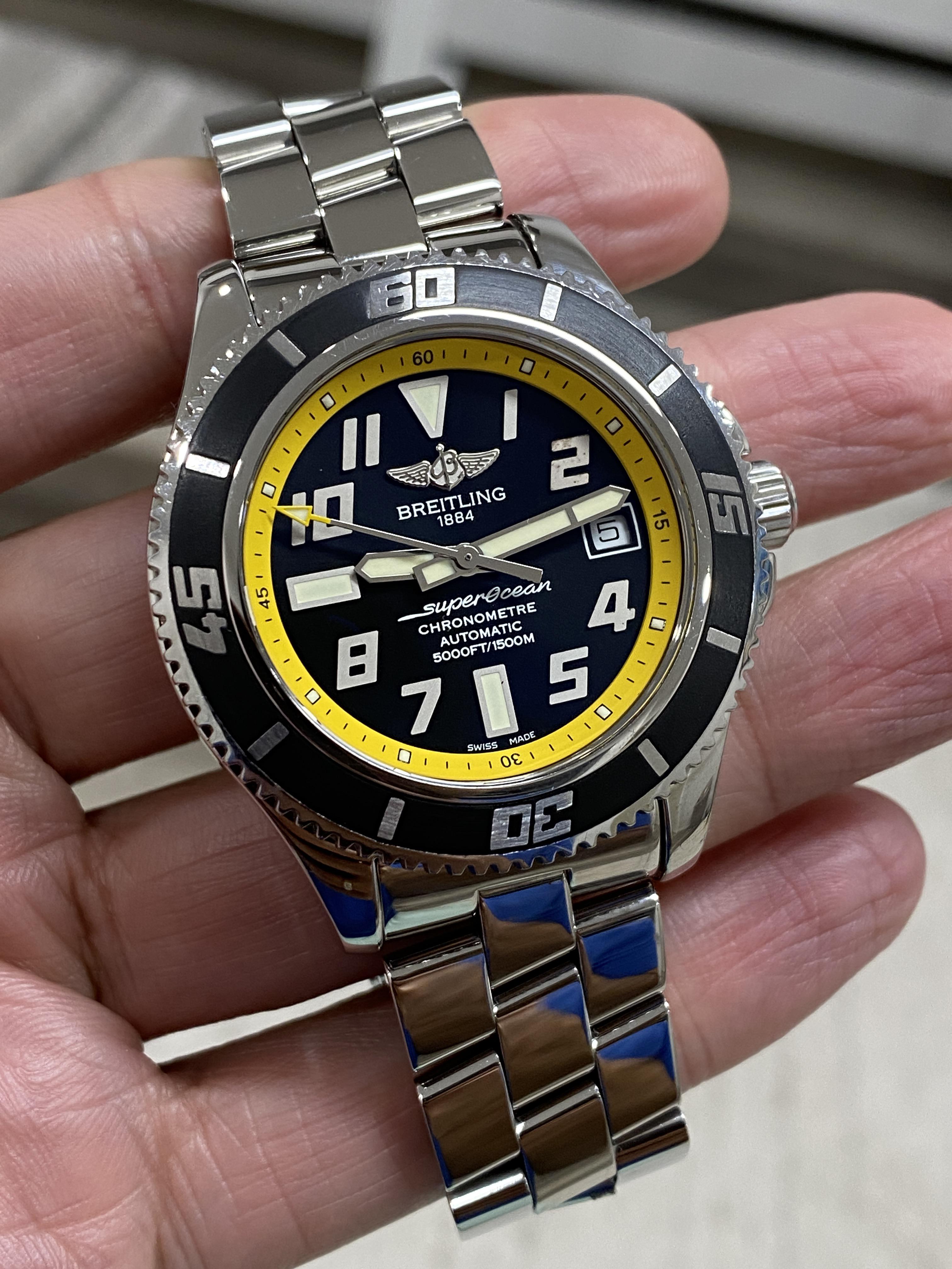Hello All - I am putting for sale - Breitling Superocean. 42mm. Sports. Box, papers, service papers, 📷 More Pics: https://www.dropbox.com/scl/fo/pvw26wobvkfocpylssh40/AHLB_F3m0rZR4Tk6KKp6n9Y?rlkey=d4l3igg7krblbf0rjay07pi2k&st=odwwedl1&dl=0 📆 Timestamp: https://www.dropbox.com/scl/fi/o8xo8t848m2d653hjnzms/Photo-Nov-01-2025-3-18-31-PM.jpg?rlkey=wzyqyao1fecbr13ro5eddlpmo&st=i1g5busp&dl=0 I am asking $1750 + shipping . Watch located in NJ USA. All my listings here: https://www.watchrecon.com/?query=watchex_enterprises&last_days=0 watchex_enterprises - WatchRecon I am very comfortable doing a facetime to show the watch if needed. Please PM me for any questions that you may have. I am certain it will go to a good home. Thanks for looking. ** 🛡️Buy with Confidence!! 600+ references. ** ⭐️Checkout my profile for other amazing watches. ** 📦All packages are shipped Fedex with insurance. ** 🌎Shipping accepted globally.