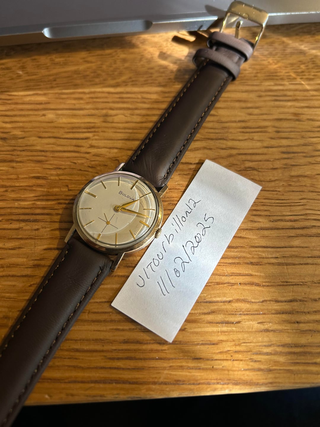 Timestamp: [https://imgur.com/a/zp0NBKs](https://imgur.com/a/zp0NBKs) *This 1960s Bulova is the perfect watch for those who want to look at their wrist and say ‘wow’.* *This watch features a stunning cream white dial that is paired with mirror polished indices and razor sharp hands that resemble some of the mid-century's most famous designs such as the renowned Patek Calatrava line.* *Powering this watch is a 17-jewel Swiss made Bulova 11BL mechanical manual movement that provides great accuracy and reliability.* *Housing this watch is a 10K R.P.G bezel and stainless steel caseback all in a slim form factor that’ll slide under any cuff you throw at it.* *Size: 32mm diameter (33mm with crown), 6.5mm height, 18mm lug width.* *Condition: In good condition with some wear to the dial, case and crystal.* *Movement Condition: The movement is currently running at ± 5-15 seconds per day, amplitude of 210-230 and a beat error of 0.6MS.* *Price: $169, no trades at this moment.* *Shipping: Free shipping within the US. International shipping available, price may vary* *The watch ships from SLC, Utah USA.* *Payment Method: Paypal, Venmo or Zelle. 3% extra if using goods & services to cover the fee charge.* *Feel free to reach out if you have any questions!*