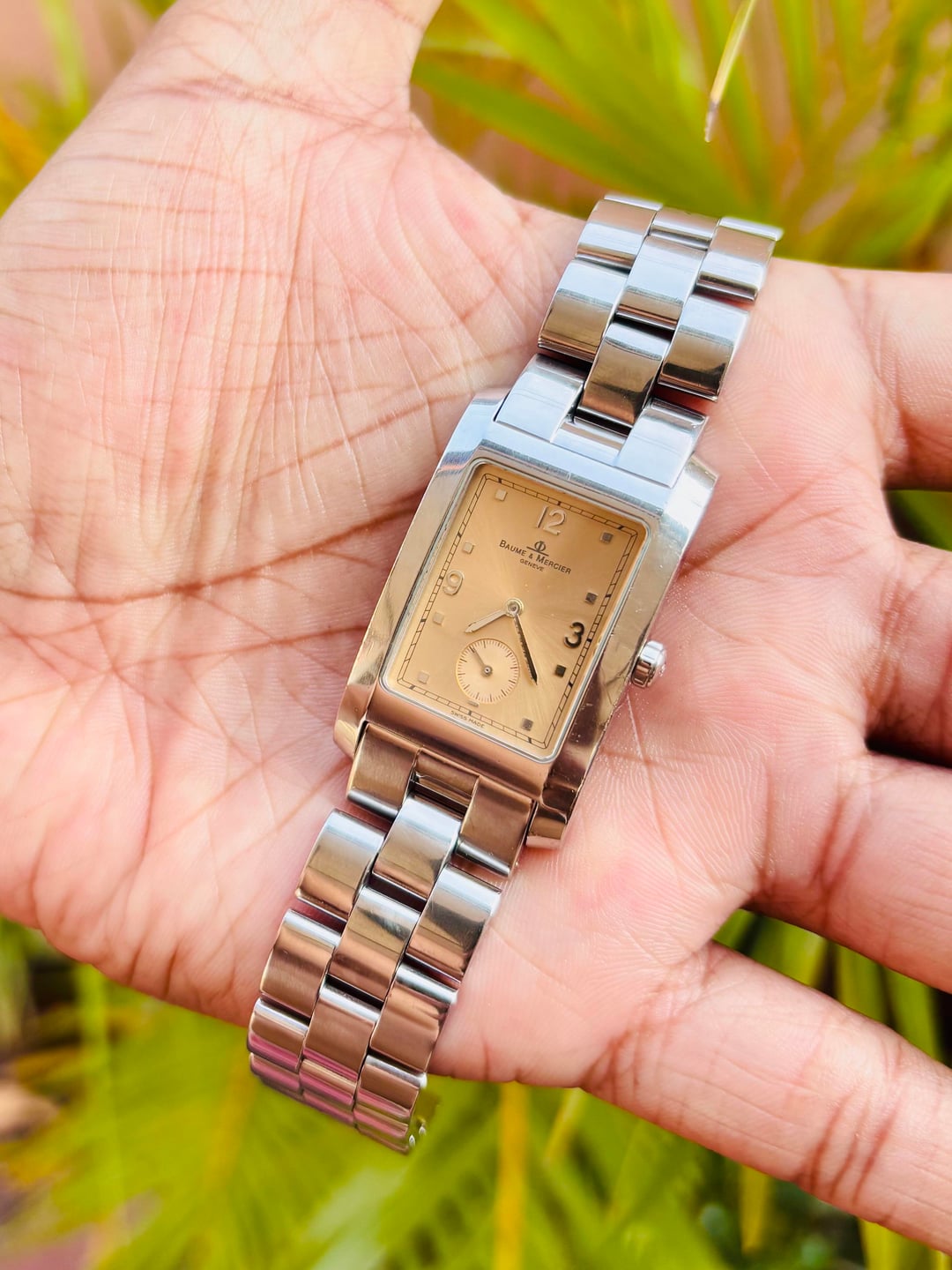 Hello everyone up for sale is this beautiful Baume & Mercier Hampton ref MV045063 in the Salmon dial variant. Lovely quartz watch with its original bracelet as well. The watch fits upto a 6.8 or so inch wrist based on my checking. I’m a 6.5” and it fits abit loose on my wrist but if a bigger wrist size.. a leather strap would look killer on this watch. Very underrated dial. Comes with fresh battery. Expecting $250 or nearest offer Shipping can be arranged worldwide I ship from LK Buyer pays shipping (FedEx tracked shipping) Feel free to reach out for any inquiries and clarifications. Cheers!
