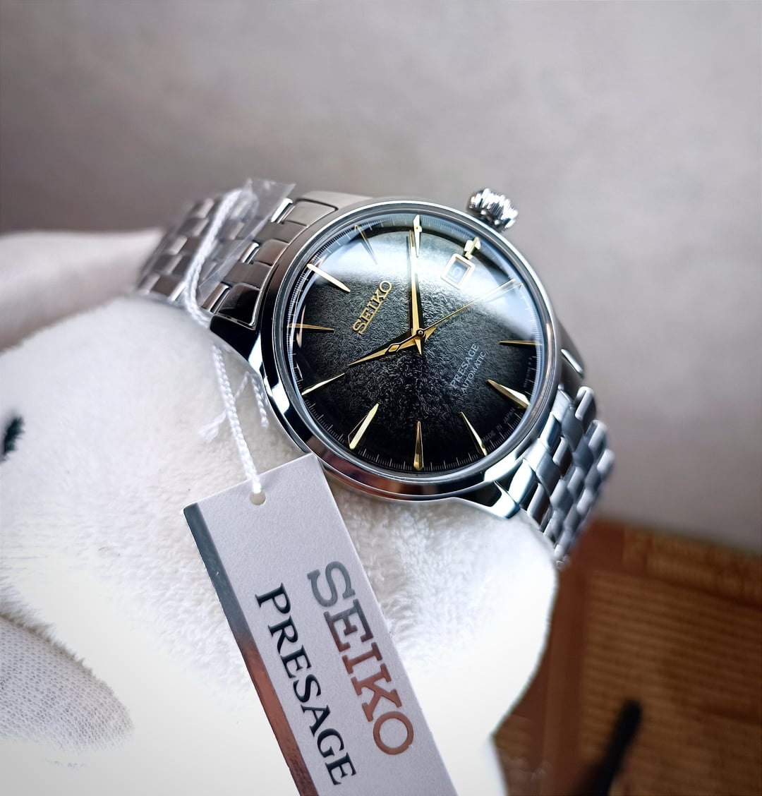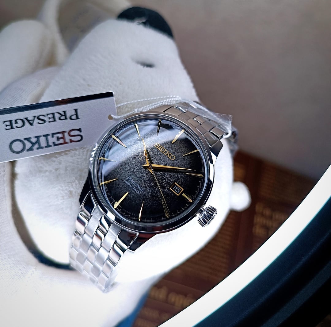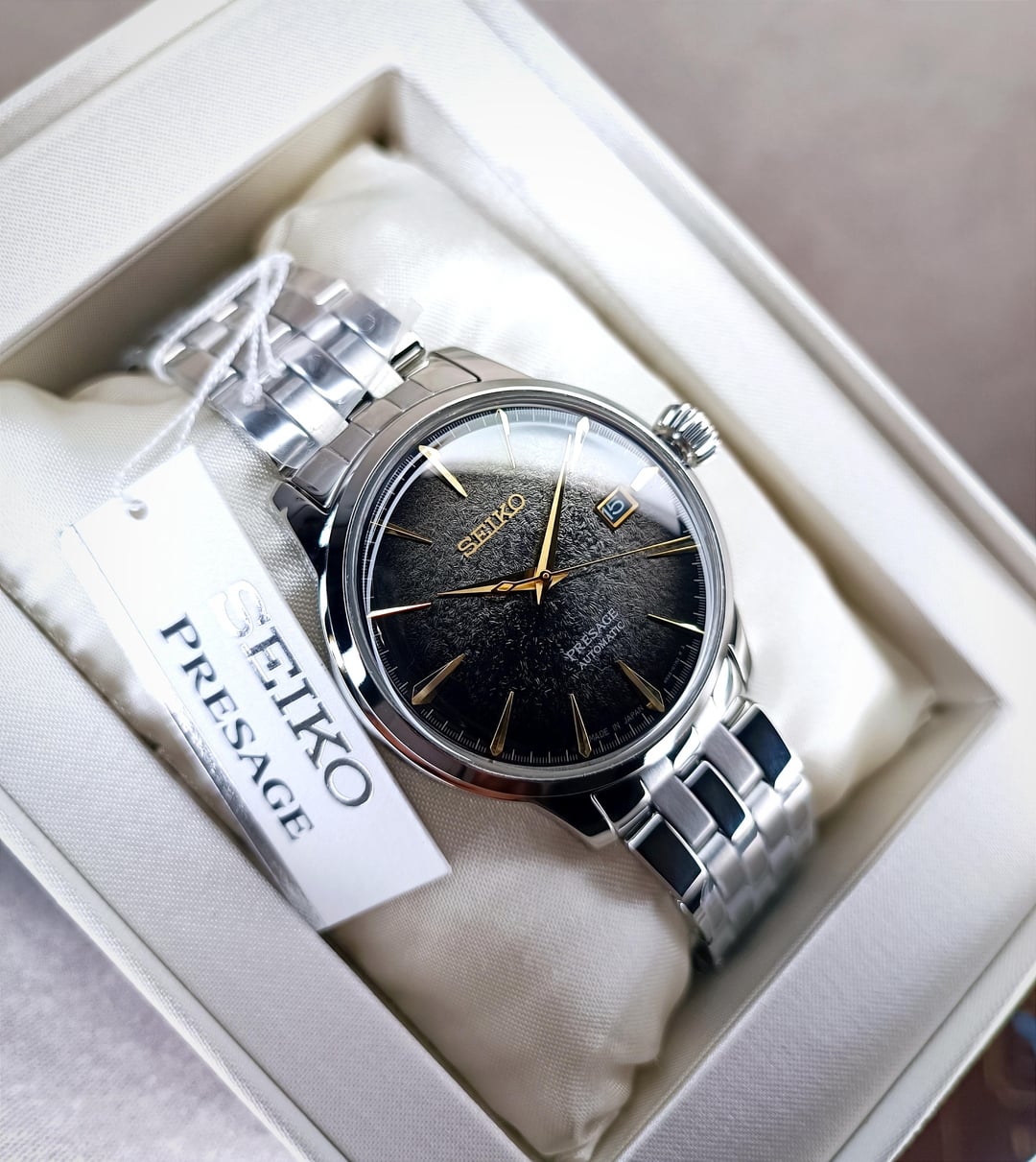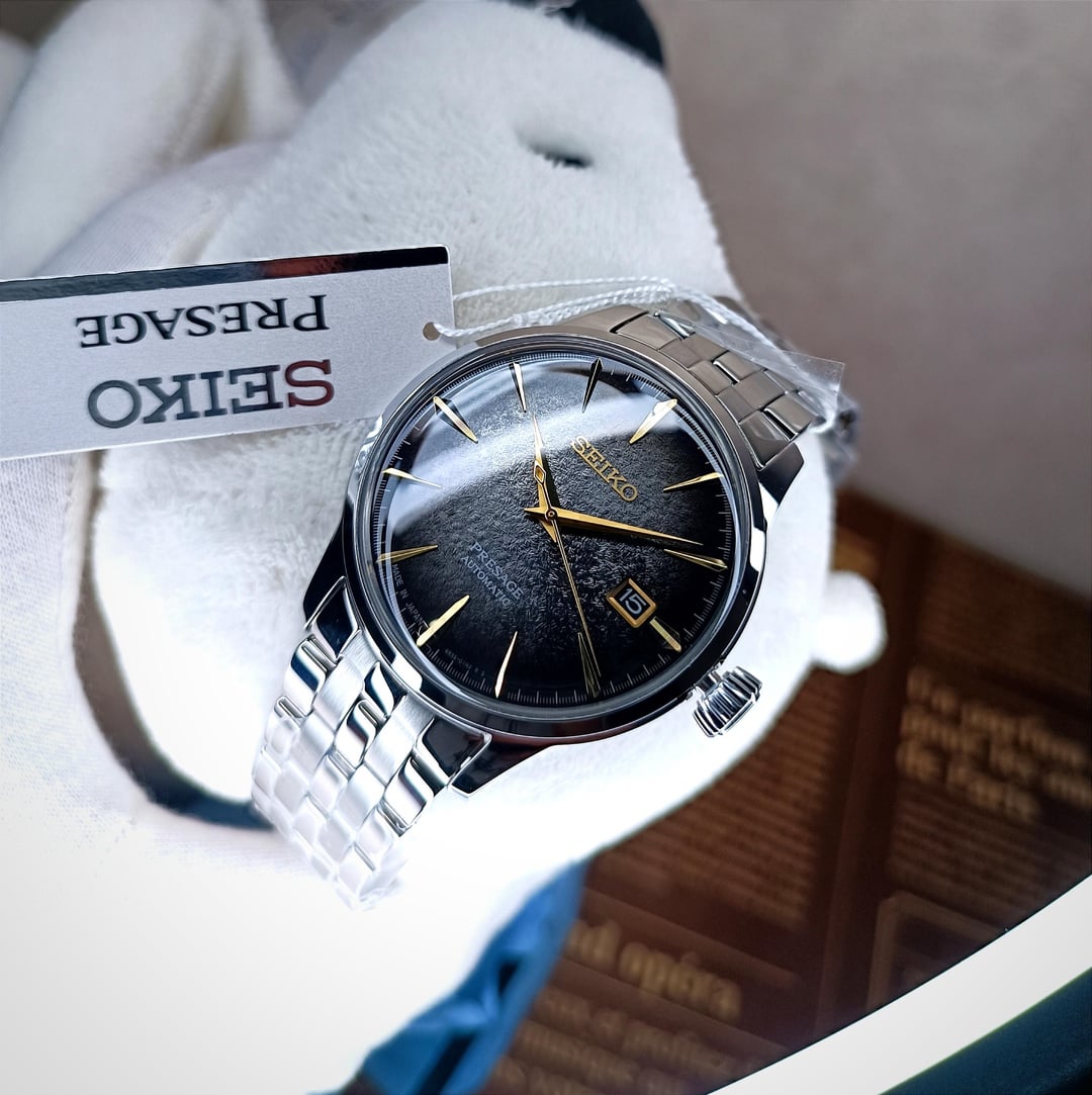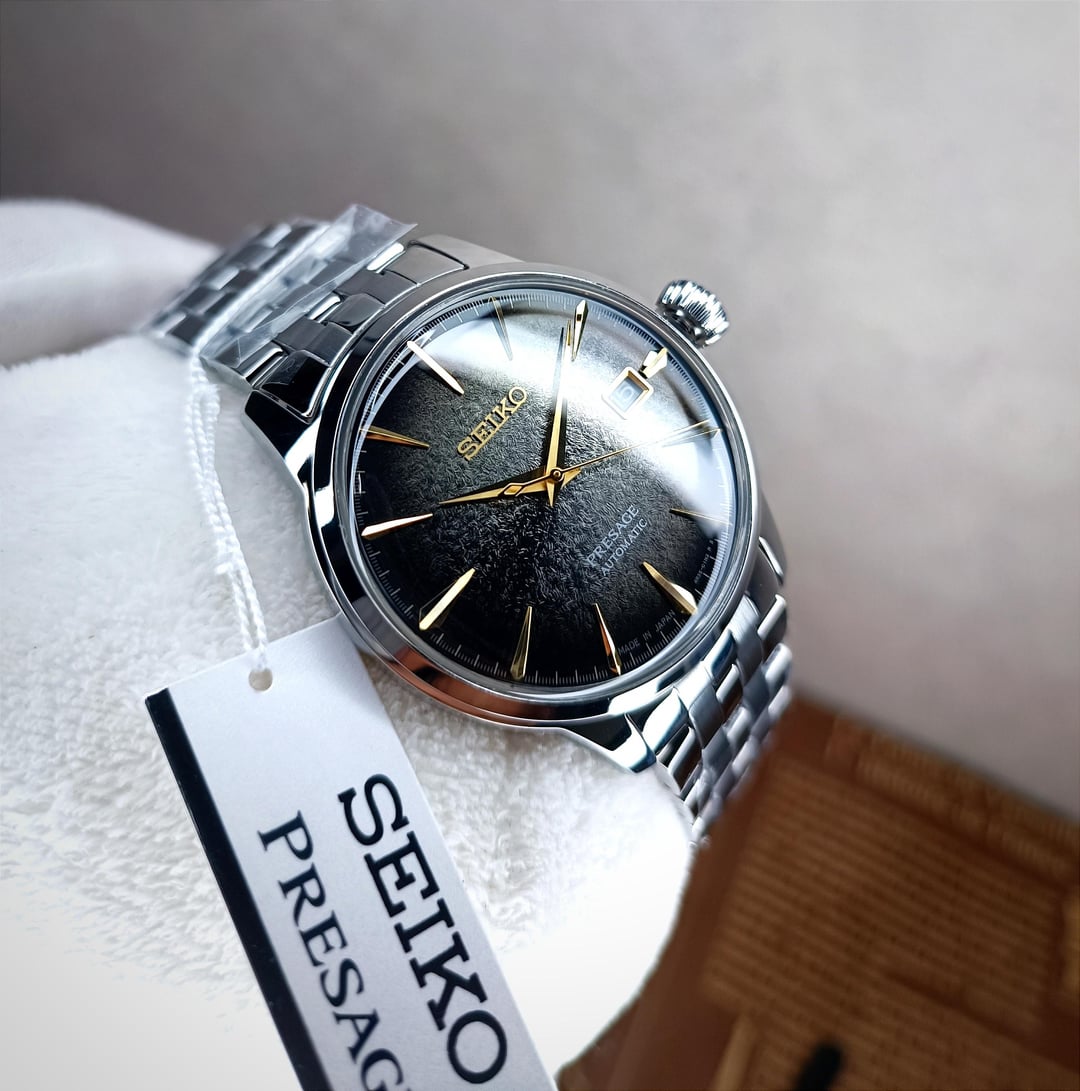 Hello r/watchexchange, I am currently selling the JDM Seiko Cocktail Time Star Bar SRPK93 (SARY245) – Night-Time Tokyo Limited Edition, in brand new, full set condition. Condition: Brand new, full box with all original papers. Still fully wrapped in factory protective stickers. Case size: 40mm | Lug width: 20mm Movement: Seiko 4R35, 41-hour power reserve, runs smoothly. Dial: Beautiful black textured dial with gold PVD indices, excellent light reflection. Crystal: Curved Hardlex Bracelet: Original stainless steel bracelet, still fully stickered. This watch was produced in 300 pieces for the Japanese domestic market and 9,000 pieces worldwide. It has completely sold out in Japan and prices have been rising significantly. I believe this is a strong collector’s piece, similar to previous limited-edition Cocktail Time models. Images / Timestamp: Included in the post! Pricing, Payment & Shipping: Price: $775 (shipping not included), no trades. Payment: WISE, PayPal F&F or G&S (+4.6% fee) Shipping: FedEx Express worldwide, 2–3 days ($50–$80 depending on location). --- Thank you!