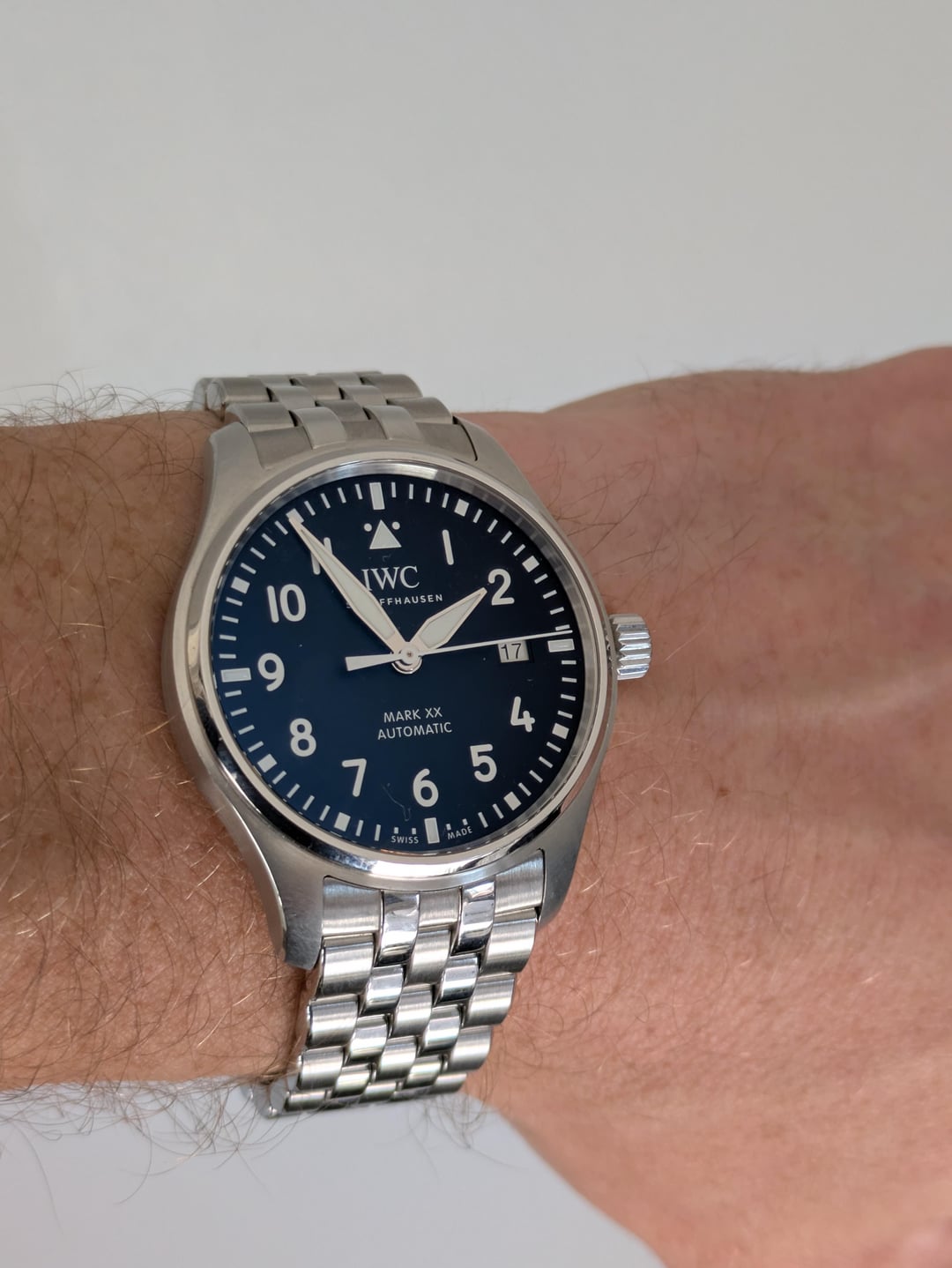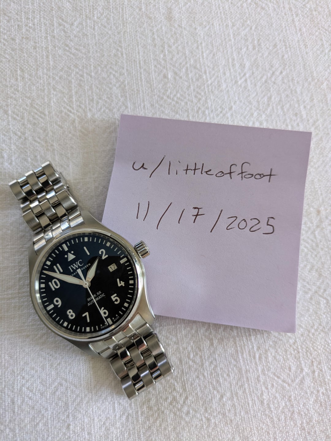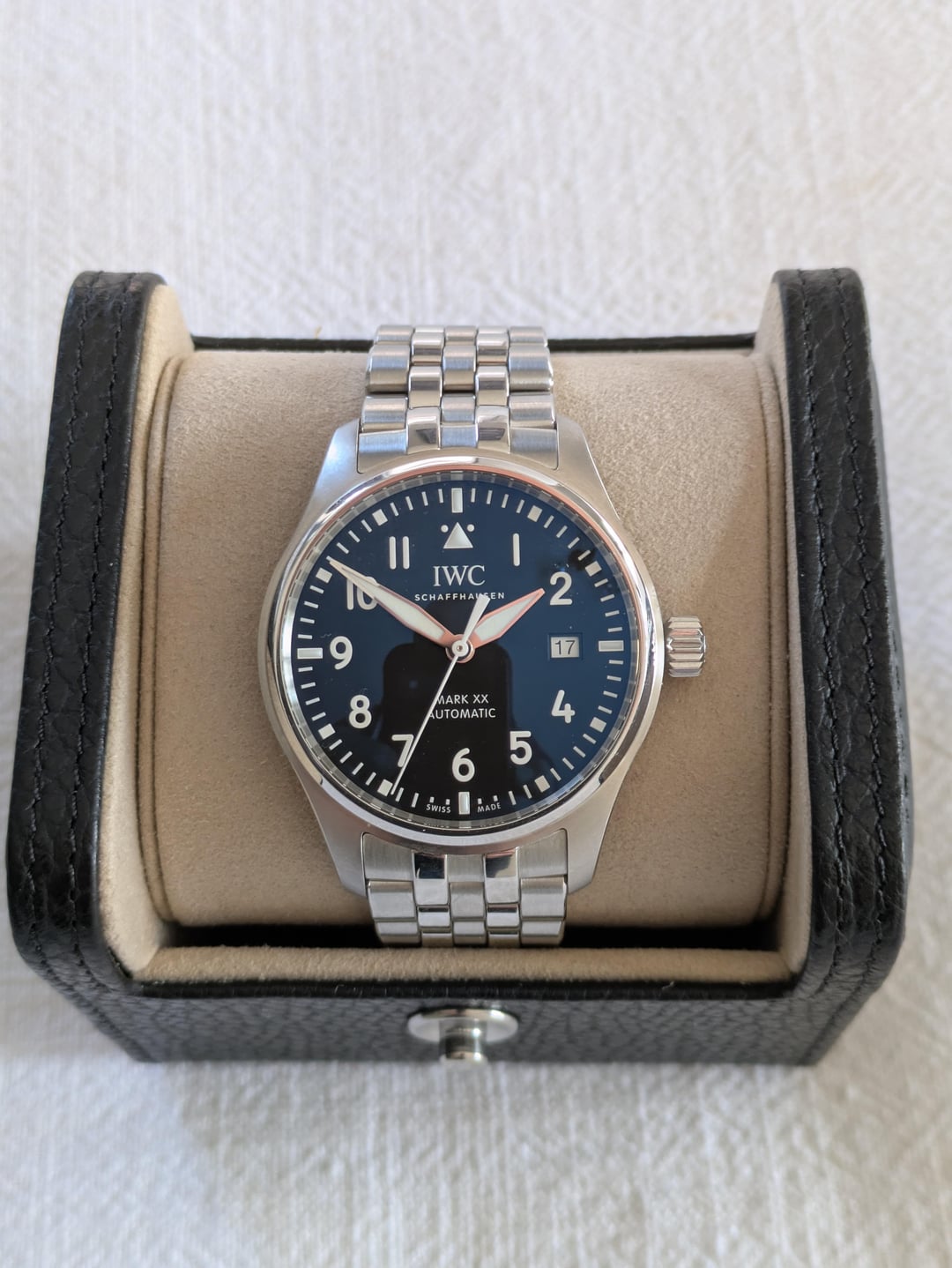 Up for sale is my recently purchased black IWC Mark XX. I got this brand new from an AD *less than a month ago*, however, I haven't bonded with the watch so it's time for it to find a new home! Worn less than a dozen times, the case/crystal/bracelet are in brand new condition. No links have been removed from the bracelet. Box, papers, warrantee card, and leather travel pouch are included. Happy to jump on a video call to show the piece and address any questions you have. ***Asking price: $5,200 USD shipped anywhere in the USA, also open to in-person meetup in downtown Chicago.*** Accepted Payment methods: Zelle, PayPal, or Venmo Link to timestamp: [https://imgur.com/a/ru1qtHH](https://imgur.com/a/ru1qtHH)