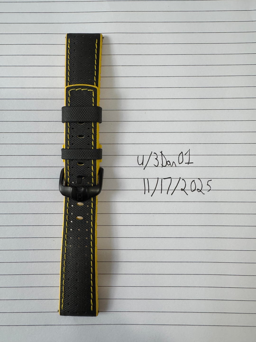 [WTS] Hirsch Robby Performance Sailcloth Strap - 20mm - Black / Yellow - Black Buckle - Unworn Price: $80 shipped (domestic US). MSRP is $165 so this is more than 50% off! Strap has never been used, in perfect condition. The watch I bought it for ended up not staying in my collection, my loss can be your gain! Please DM me with any additional questions!