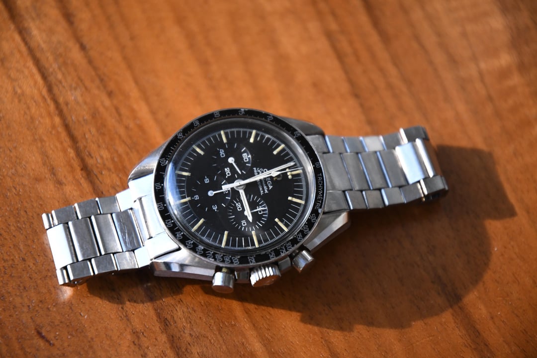 This was recently purchased from a collector of Speedmasters and was rarely worn as you can tell from the photos. Everything about this watch is clean, from the dial and lume to the bezel and bracelet. Included with the watch is an extract from the Omega Archives which will be included with the watch. I’ll run through the condition of everything below: Case: Very Good with solid brushing and sharp lines throughout. Crown: Original 24-tooth flat-footed Omega Dial: Excellent-Solid matte black with no marring or tarnishing. The tritium lume is all there and has patinaed to an incredibly even light cream. The dial of this watch is the showstopper. Hands: Good to Very Good-Original with matching patinaed lume. The base of the minute hand has grayed a bit. Bezel: Very Good - Original Omega DON bezel with minimal wear. There is a bit of paint missing from the tachymeter printing and a few other places. Bracelet: Very Good 516/1039 dated ’70. There is very little stretch in the bracelet and will fit a 6.75” wrist without stretching. Movement: Good-This has not been serviced in a long time. The winding is a bit stiff and there is tarnish. Everything functions and the chronograph resets correctly. Overall this is an outstanding watch, especially for a model that is relatively rare. It can be yours for $7500 USD shipped CONUS. I can ship internationally after negotiations. I can take Venmo, Zelle, Bankwire, and PayPal F&F [Photos](https://imgur.com/a/omega-speedmaster-145-022-68-w-extract-mfYEKf8) [Timestamp](https://imgur.com/yiAb7rn)