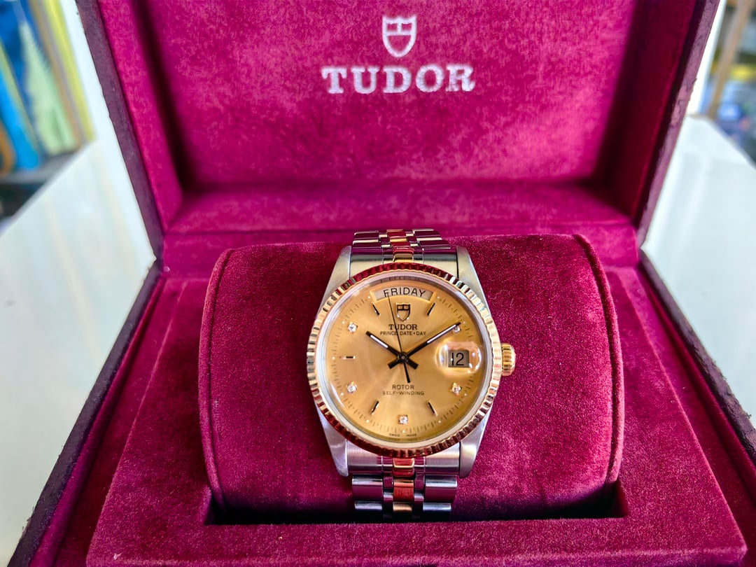 Up for sale is a Tudor Prince Date Day 76213 FULL SET. **Price: $1999.** Payment via PayPal or Wise is preferred. **Watch is in Chongqing (known as the Cyberpunk City), China.** **I will pay the customs duties or tariffs for buyers located in United States.** **Watches will be shipped via FedEx, which delivers to your doorstep in just four days.** Worldwide shipping and I am willing to ship this watch anywhere with buyers paying for the shipping. If you really love this watch and pay fast, I will offer free shipping! **The watch is 100% authenticity guaranteed**. It is fully functional and running at +7 seconds per day. The bracelet is stretched. Feel free to ask for any custom timestamps or videos, I am happy to send them. Please don't hesitate to ask any questions, thank you! **I am able to source all kinds of Tudors, please feel free to PM me!**