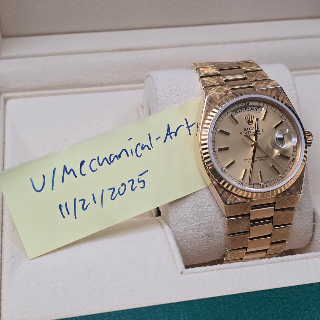 ![[WTS/WTT] Rolex Day Date OysterQuartz, Florentine Finish in 18k Yellow Gold, circa 1980 5](https://cdn-cf.watchpatrol.net/600x600/img/full/6794d3035833d7807270f222bbc770c35e4ec364.jpg)
