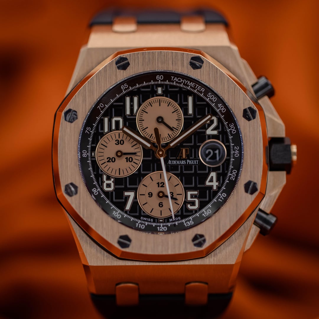 **Audemars Piguet Royal Oak Offshore “Half Brick” Ref: 26470OR.OO.A002CR.02 | 42mm | Rose Gold & Black Dial | OuterBox, Inner, Manual, & E-Archive Papers** Up for grabs is an absolute stunner, one of the most iconic and bold pieces in the AP catalog. The aptly named “Half Brick” makes a statement with its solid 18K red gold case, commanding wrist presence while maintaining the refined craftsmanship AP is known for. The striking black dial provides a bold contrast, making this Offshore Chronograph a true collector’s piece. Price: $41,250 • Payments accepted: Wire, Zelle, Credit Card (+3.3%) • Fully insured overnight shipping via FedEx. Condition and Details: This watch is in excellent condition close to mint. The movement is running well and chronograph runs and sets perfectly. There is a hairline scratch on the inside of the rubber strap not shown in pictures. This will also come with an extra ostrich leather strap from AP Bands ($300 Value). I make an effort to highlight any imperfections through macro photography rather than conceal them. Kindly excuse any dust, fur, or other unavoidable specks visible in the images. Trades: We gladly accept trades across most major luxury watch brands. Whether you’re looking to trade up, down, or make a multi-watch deal, we’re flexible and ready to work with you. Brands we accept include: Rolex, Patek Philippe, Audemars Piguet, Omega, Richard Mille, Tudor, Hublot, Panerai, Vacheron Constantin, and others. Shipping: We ship fully insured via FedEx Overnight to your nearest FedEx location with “hold for pickup” for insurance purposes and peace of mind. Happy to walk you through the watch F T and answer any questions. Buy with Confidence: All of our watches are 100% authentic and thoroughly inspected. We’re experienced private dealers with a trusted reputation for transparency and professionalism — references available upon request. Our mission is to ensure your buying experience is smooth, secure, and satisfying. Connect: 🤝 Contact info: [https://kaiposcollection.shop](https://kaiposcollection.shop/) 📍Located in Dallas, Tx Timestamp -> [https://imgur.com/a/VXYc9Ep](https://imgur.com/a/VXYc9Ep)