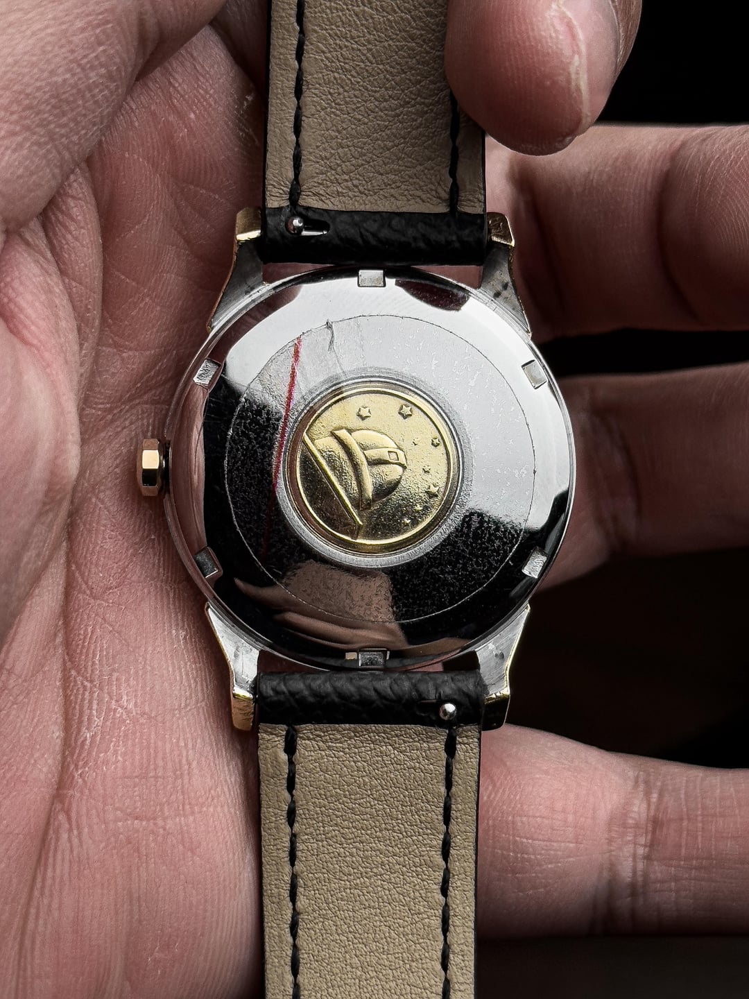 Up for sale is the Demi Gold Omega Constellation Pie Pan Ref. 168.005 with Applied Indices in great serviced condition Images: https://drive.google.com/drive/folders/1LLgJQP9LslUz6QQyhACUMWY-rZKrMmC7 Video: https://drive.google.com/file/d/198_G178KBRzFNHYZE_DuQw2mx3pYDKYd/view?usp=drivesdk Timestamp: https://drive.google.com/file/d/1HKyvabWG35GMigJ-rqoqtRFkSoJvGZqp/view?usp=drivesdk The Omega Constellation Pie Pan Ref. 168.005 is a quintessential 1960s dress watch that embodies Omega’s pursuit of precision and elegance during the golden age of Swiss watchmaking. Introduced as part of the flagship Constellation line, it represents the brand’s legacy of chronometer-certified accuracy while offering one of the most iconic dial designs of the era. The standout feature of this model is its distinctive pie-pan dial, with sharply faceted edges that give the dial depth and character. Applied hour markers shimmer subtly against the silver surface, while the small gold star above 6 o’clock points to the Constellation’s heritage as a chronometer-grade watch. The sculpted dog-leg lugs give the 34.5mm case a strong wrist presence despite its vintage proportions, while the Observatory medallion on the caseback serves as a symbol of Omega’s pursuit of chronometric excellence. Inside beats the Omega Caliber 564, one of the brand’s finest automatic movements of the period. It features 24 jewels, chronometer certification. The copper-toned finishing and refined bridge layout showcase Omega’s attention to both engineering and aesthetics. At a time when watch design often leaned on excess, the 168.005 stood out for its restraint and balance. It was the work of a young Gérald Genta, whose design instincts gave the Constellation its voice long before he went on to shape icons like the Audemars Piguet Royal Oak and IWC Ingenieur. This example remains in great condition for its age, showing very little sign of wears consistent with age. The dial is clean and crisp, the crystal is clear, though you can see some patina spots here and there (a clear sign that the dial is original and untouched). It has been recently serviced and is keeping great time. The watch comes fitted on custom leather straps with gold Omega buckle. Watch comes with standard box. Price: $2750 + $60 flat shipping fee (via UPS/DHL with tariffs and duty fee covered). Payment via PayPal F&F or G&S (+4.6% fee paid by the buyer). Not accepting trades. Feel free to message me with any questions or if you're interested. Have a great day! Check out my other watches on Instagram: @jasonswatchcorner