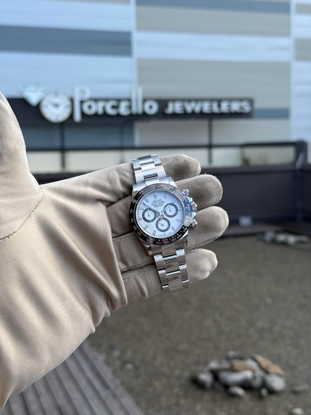Model: Cosmograph Daytona Ref. 116500LN Case Material: Stainless Steel Case Dimensions: 40mm Bezel: Black Ceramic Tachymeter Bezel Dial: White "Panda" Dial Band Material: Stainless Steel Oyster Bracelet Max Wrist: 7.25 in. Original Purchase Date: June 2017 Movement: Automatic, Mechanical Accessories: Full Set Condition: Nice preowned condition with light scratches on the case and bracelet. Price: $27,745 shipped! Bank wire price. WA residents subject to sales tax Email: [email protected]