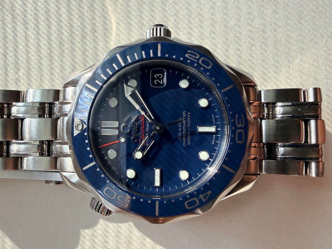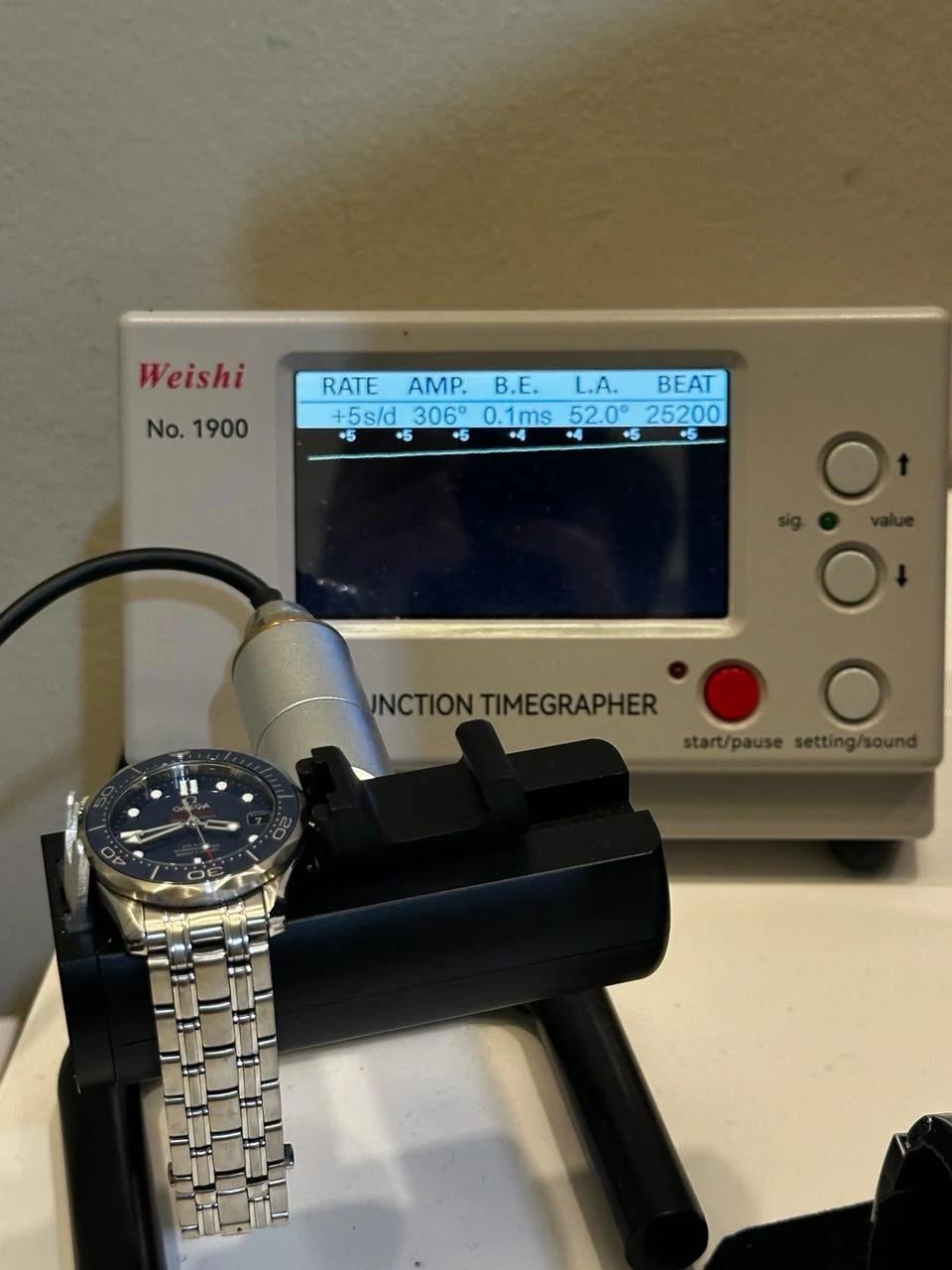 Selling my Omega Seamaster Diver 300M 36mm to consolidate the collection. This is the 36mm blue variant that doesn’t come up often, and it’s in excellent overall shape. - Omega Seamaster Diver 300M 36mm – ref. 212.30.36.20.03.001 - Size: 36mm - Dial: Blue - Movement: Automatic - Condition: Excellent - Timegrapher: Excellent timing - the screenshot is from previous owner taken ~34 days ago (I do not have newer readings) - Polishing: Light polish by previous owner - My wear: I never wore the bracelet, and wore the watch ~7 times on straps - Set: Watch only (naked) no box no papers - Bracelet: Full bracelet including 2 half-links Price: $2,600 Location: Texas, USA Shipping: CONUS only Payment: Zelle or Venmo or PayPal