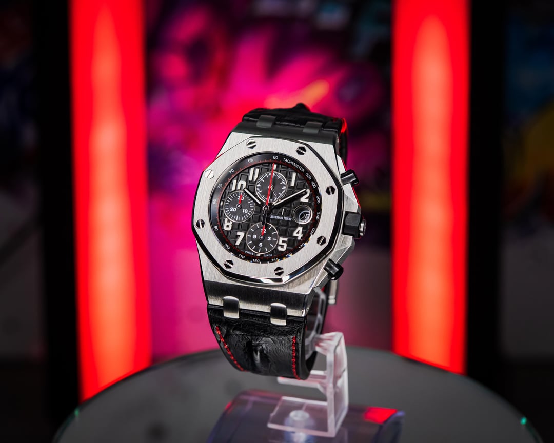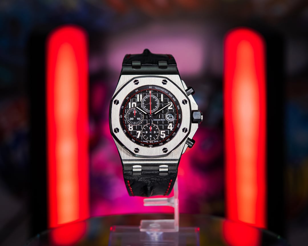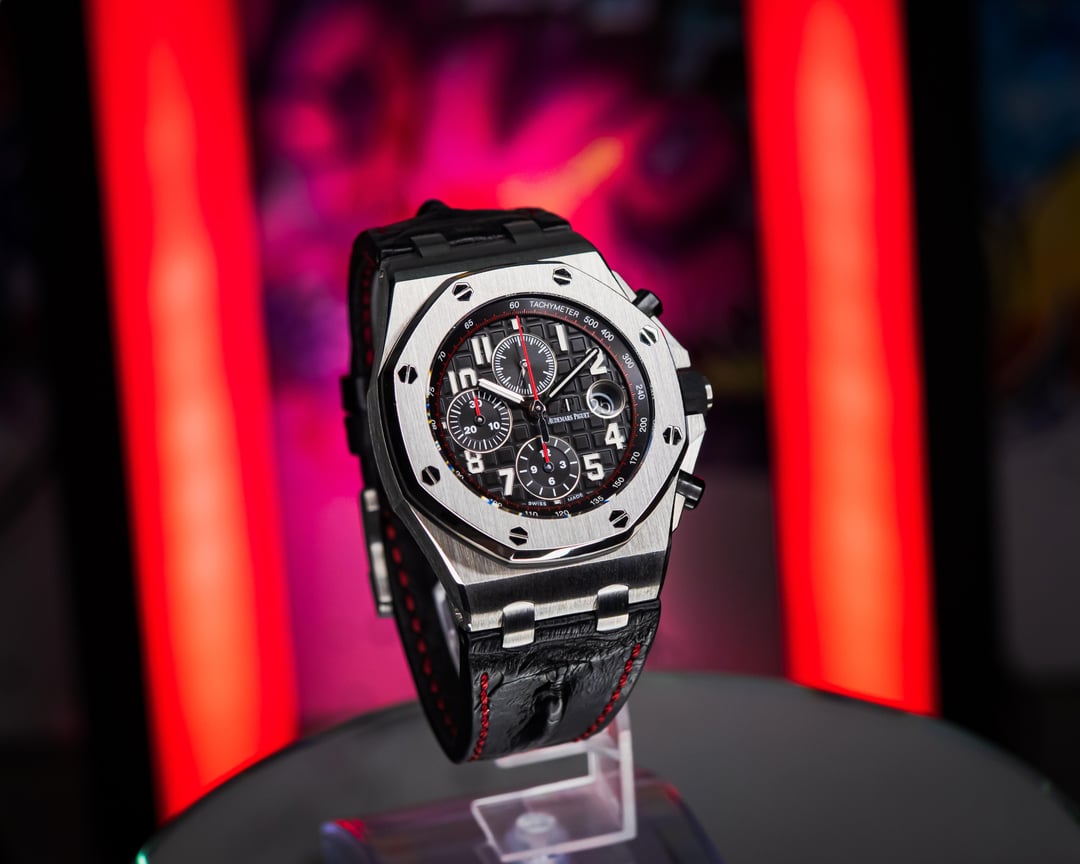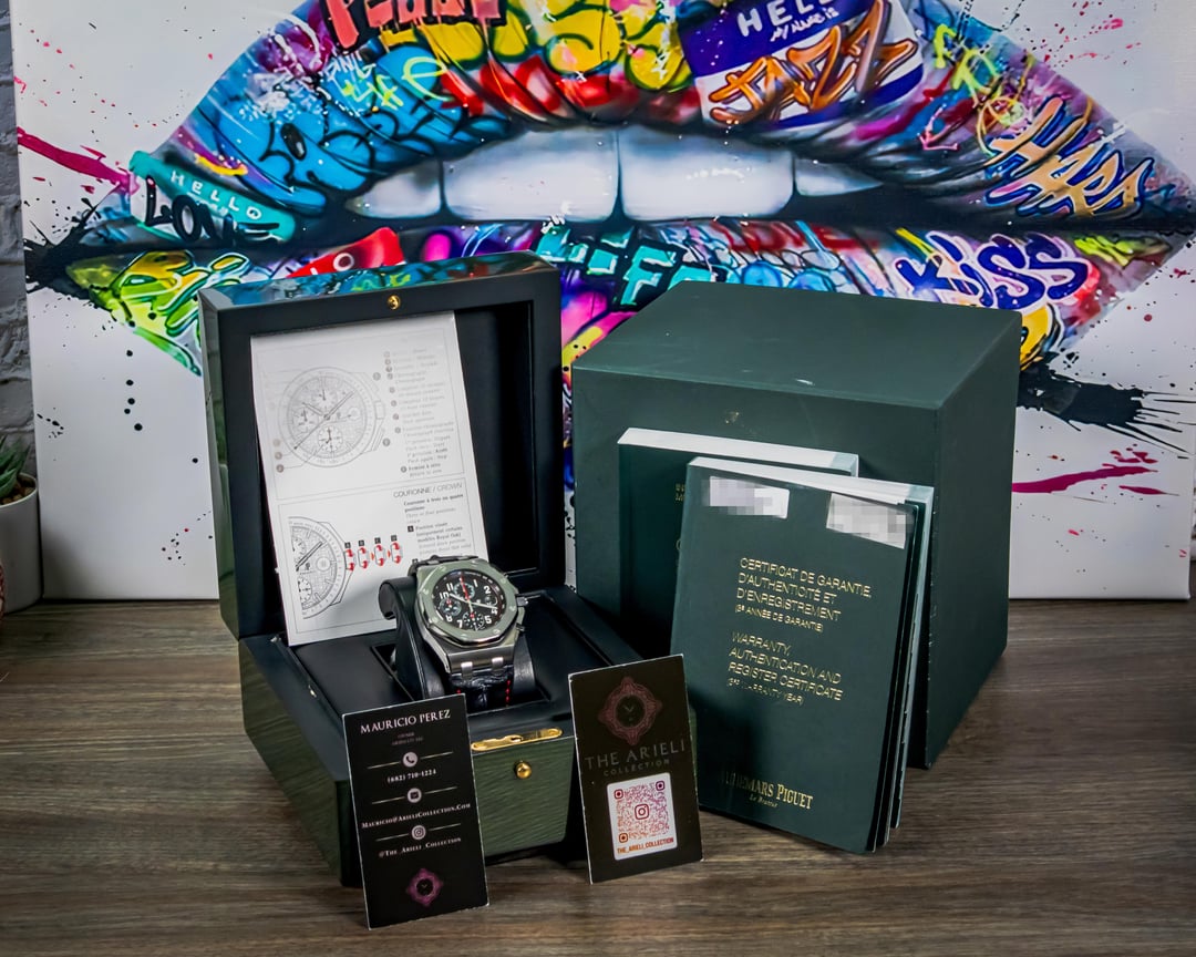 The 𝚨𝐏 ROO “Vampire” brings a cool, focused presence that stands out in the best way. The black Méga Tapisserie dial, red accents, and brushed steel case create a look that is sharp without trying too hard. It has that signature Offshore strength with a darker edge that collectors really appreciate. Whether you are keeping it casual or dressing it up, this one always feels right, and it always gets noticed by the people who truly understand 𝚨𝐏. [Timestamp](https://i.postimg.cc/y6RRW1P2/20251203-082916.jpg) **Asking Price:** **💲 20.5k** **USD** direct. Escrow, major credit cards, and crypto accepted. DM for more info! **Original Sticker Price:** **\~💲37.1k** **Key Features:** · **Case Material** – Stainless Steel · **Case diameter** – 42-millimeter · **Papers Dated** – 10/2017 · **Set Contents** – Inner/outer box, QuickStart guide, book, and dated warranty book · **Bracelet** – 𝚨𝐏 black Hornback croc strap with matching red stitching with pin & buckle. · **Location** – Fort Worth, TX **Condition:** Excellent overall condition with little to no visible wear on the case, clasp, or strap. Additional images or video available upon request. ***Trades Considered!*** Feel free to throw your trade offers to step into this piece. **Why Choose The Arieli Collection?** As an independent seller and owner of the Arieli Collection, I am committed to only providing authentic, high-quality timepieces. With years of experience in the luxury watch market, I've built a reputation of trust and reliability with positive reviews across a variety of marketplaces. I am always willing to schedule a video consultation when requested and while my company may not be an AD or official representative of any brand we post, rest assured that we will treat you just as well or better! All orders outside DFW will be shipped fully insured FedEx Overnight and the entire packing process is recorded for peace of mind. **All images provided are of the actual watch you'll receive.** I've taken great care to capture the watch's beauty in these photos. Feel free to request a live video consultation and we can show you the piece live on camera. Find us on IG - **the\_arieli\_collection** Find us on FB **- TheArieliCollection**