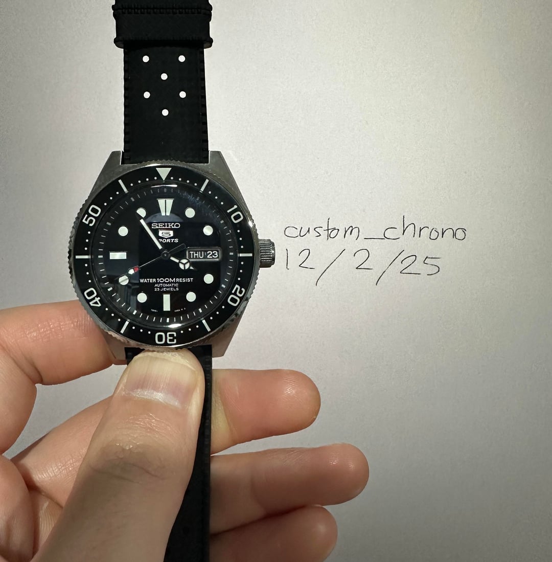 hey everyone, i have a sleek mod up for sale today i wanted to make a simple, black diver, but still with just enough personality. i really like the case i ended up using as it has a nice shape and good brushing. i also wanted to do a fully lumed build, which is always really cool! this watch measures 43.3mm diameter, 49.4mm lug to lug, 20mm lugs, and 13.8mm thickness to a slightly domed sapphire crystal. it runs on a regulated NH36 automatic movement with a fully lumed day and date wheel. it of course has an OEM SNZF017 dial that has a beautiful glossy black surface i’m asking $285 shipped CONUS via usps priority mail. i take paypal and just make sure to add 3.5% to the total cost if using the goods and services option to cover the fee. if you have any questions please let me know! thanks