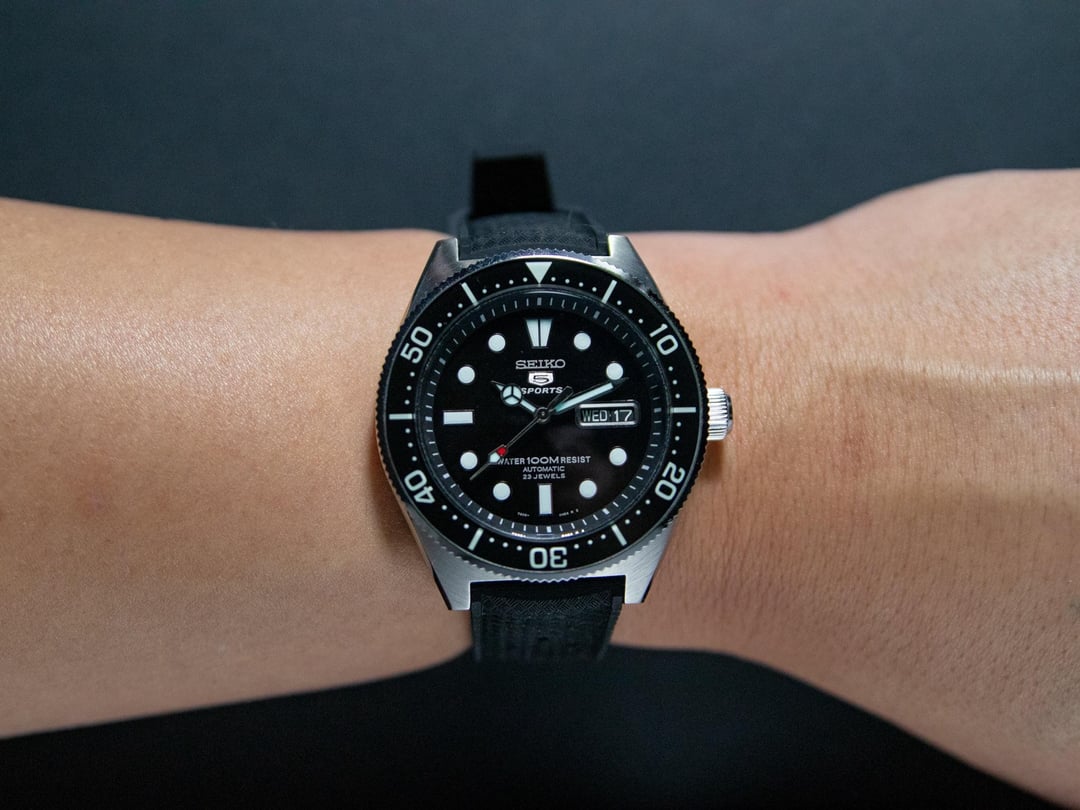 | Seiko 5 Sports SRPD79K1 All-Black Mini Monster PVD Nylon Strap $215 the-noah (1) |