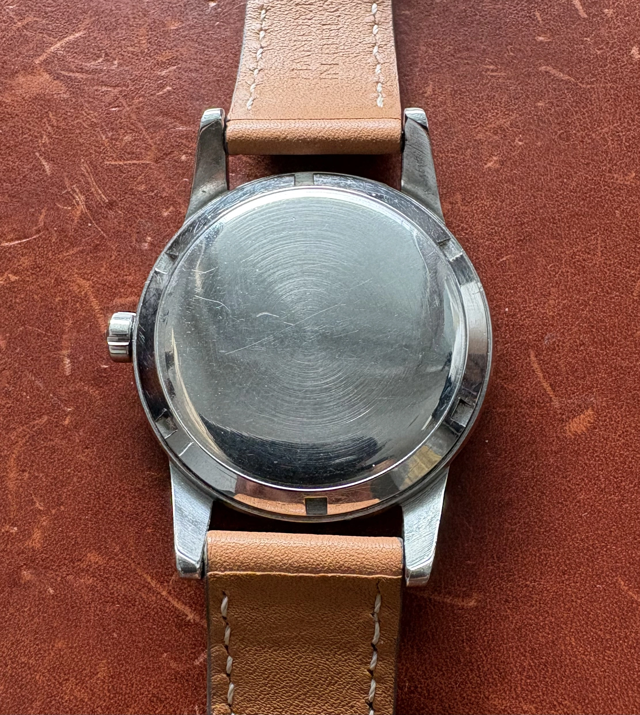 Movement: Caliber 351, a bumper movement. The serial number dates it to 1947, i.e. prior to the launch of the Seamaster line in 1948. The movement is clean and runs well.