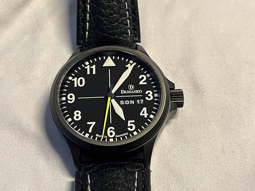 [Verification](https://i.imgur.com/Xa3igpS.jpeg) [More Images](https://imgur.com/a/damasko-da36-ilnQoDA) Selling this Damasko DA36 with a black PVD coating over an ice-hardened steel case. This watch is an older model which still uses the ETA 2836-2 automatic movement (before Damasko started producing their own movements). It comes with the original black leather band, and I'll throw in a Nick Mankey Designs strap as well. Really nice watch that keeps very good time, however I have found myself wearing my Sinn more often. I'm the second owner of this watch, and I think both the original owner and myself didn't wear this watch very much so it's in great condition. Just want to find this watch a good home where it'll get worn more often. Price: **$1000** ~~$1100~~, Paypal FF, PayPal G&S (+4.4%, paid by buyer) or Zelle, CONUS only. Includes cost of shipping. Trade: Would consider some Nomos watches (metro, tetra, tangente), or a Sinn 105 white dial. Condition: Excellent, with one small ding @ 12 o'clock. See photos for condition. New here but have a number of trades on /r/pen_swap if you want some trade history. Happy to find time to do a video call if that helps.
