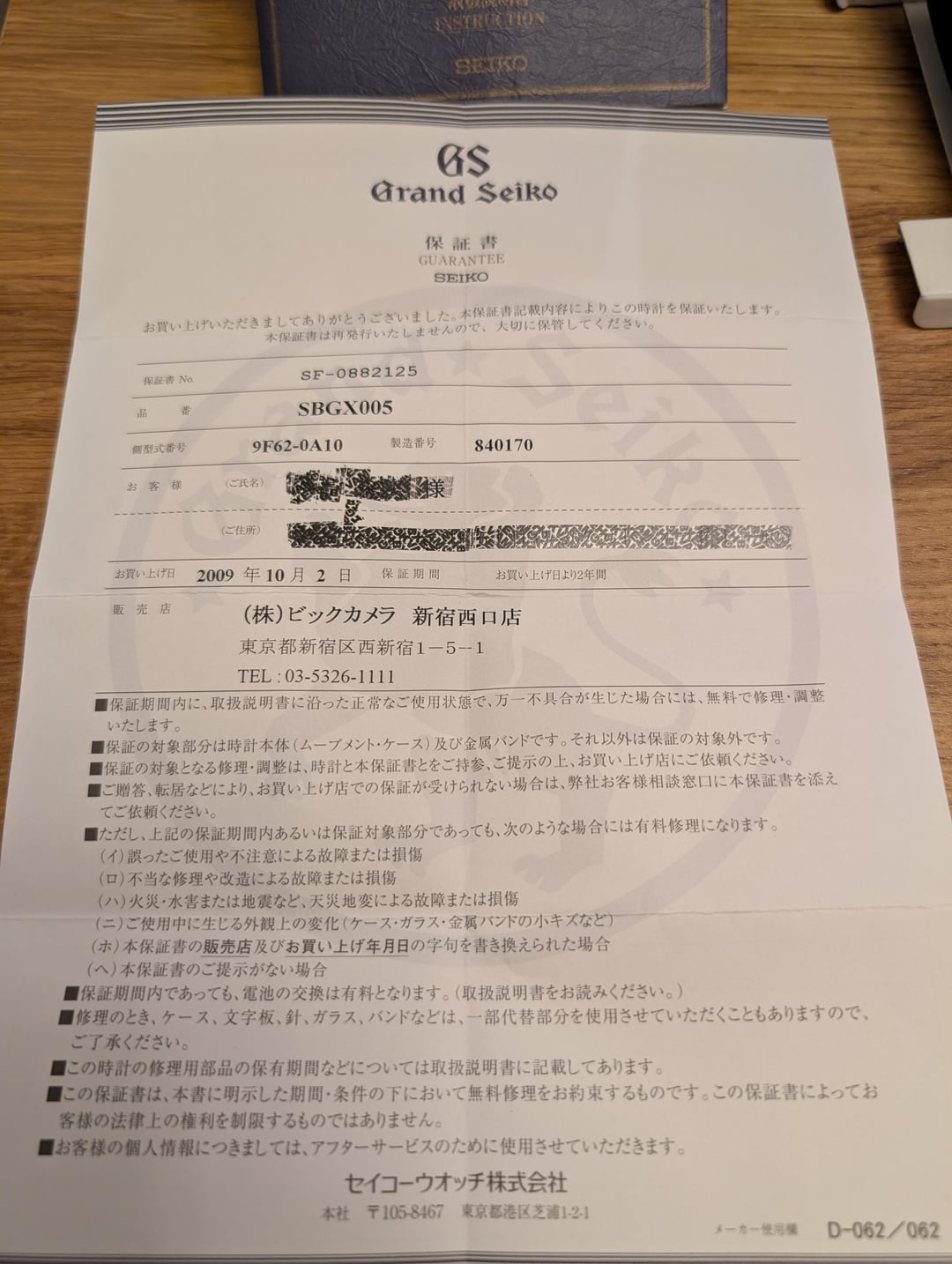 [WTS] Grand Seiko SBGX005 - Original box, warranty card/purchase receipt, and instruction booklet from Japan -$975