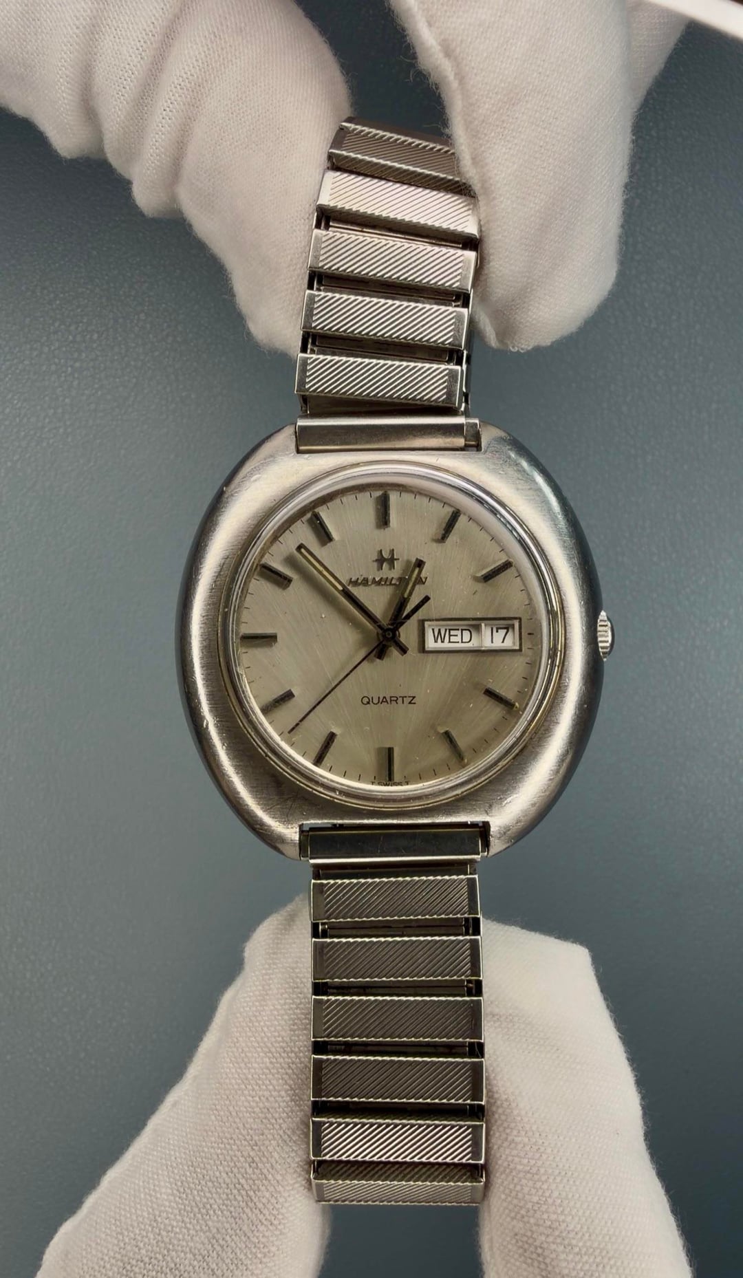 Vintage Hamilton “Disco Volante” -Details: A beautiful and rare vintage disco volante (flying saucer) watch for men! Steel case and elastic bracelet in good condition, see the photos for yourself! Has a day and date function, fullly functioning. Great for someone looking for a very unique and rare piece to add to their collection! -$177 Shipped -Includes shipping (US). I accept Venmo, Zelle, CashApp, and PayPal (+4% if using G&S) -Case size: 39mm -Movement: Quartz -Timestamp: https://imgur.com/a/ygDMvSk -Location: Downtown Los Angeles -IG: @ColeccionDeLosSantos -TikTok: Chris.DeLosSantos