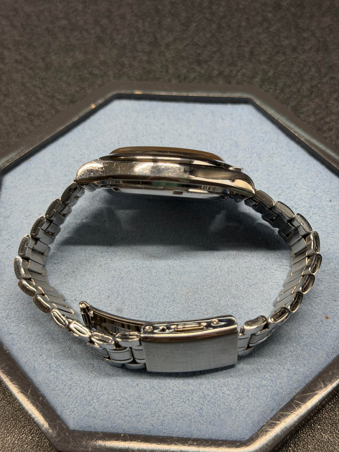 Hey folks Seiko quartz with a hinged crystal that opens so you can touch the time! Dark blue dial with raised markers. Has a battery-powered quartz movement. 36mm, thickness 10.7mm. Its seen its day, it's been well-loved :) Has some marks on the case and bracelet. I'm not sure what year this was manufactured. I just got it as is, no box, papers, etc. See pics for condition. $150 shipped conus PayPal F&F/Zelle. I have 60 positive transactions on watchexchange with good feedback so please read them. Also have an eBay store with hundreds of sales and hundreds of positive feedback so read them as well (offtherakcollectibles) Sale only, no trades. Ships from NYC so if you're in area can meet up locally. Please leave a comment here so I can view your transaction history and then message me if you're interested. Thank you!