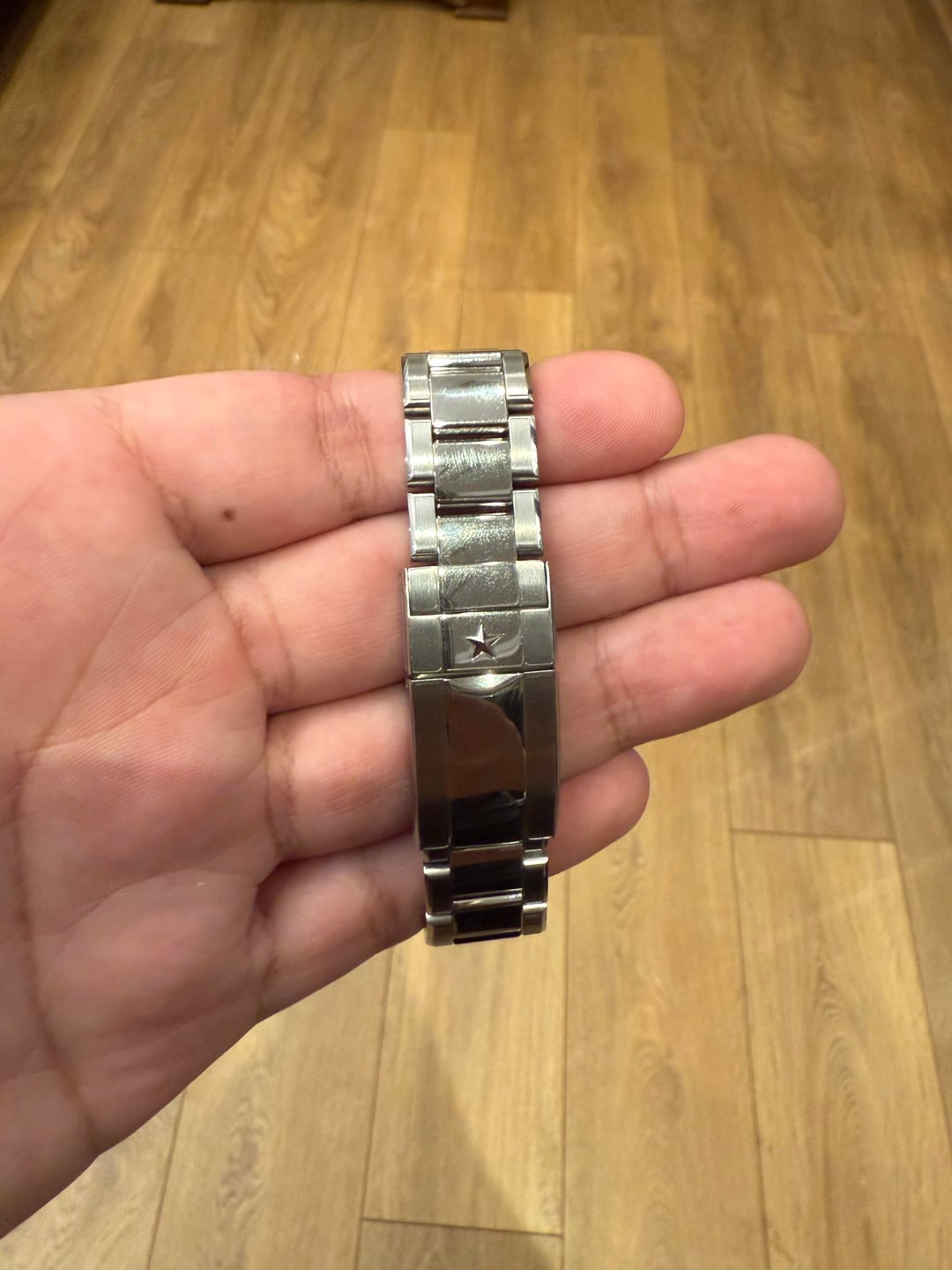 **2024 Zenith Chronomaster Meteorite Dial - 03.3120.3600/76.M3100 - Full Set** The Zenith Chronomaster Sport Meteorite features a 41mm steel case, black ceramic bezel, and a unique meteorite dial with Widmanstätten patterns, powered by the high-frequency El Primero 3600 movement for 1/10th-second chronometry, offering a 60-hour reserve, and includes both steel bracelet and rubber strap options, combining cosmic rarity with sport-luxury design. Case & Design * Case: 41mm stainless steel, 13.6mm thick, 100m water-resistant. * Bezel: Fixed black ceramic with 1/10th-second scale. * Dial: Genuine meteorite with unique Widmanstätten patterns; tri-color subdials (white/grey/anthracite). * Crystal: Domed sapphire with anti-reflective coating, transparent sapphire caseback. Movement & Functions * Movement: El Primero Calibre 3600 automatic. * Frequency: 36,000 VpH (5 Hz). * Chronograph: 1/10th-second precision with a central hand completing a rotation in 10 seconds. * Power Reserve: Approximately 60 hours. * Features: Column wheel, horizontal clutch, date at 4:30, hacking seconds. Bracelet & Strap * Bracelet: Integrated stainless steel with brushed/polished links. * Strap: Includes an additional black rubber strap with a steel clasp. ____________________________ **Asking: $10,995 (Net to me) + FREE shipping** *PayPal G & S (+4.5% Fees) / Wire / Crypto Accepted* PM for any questions