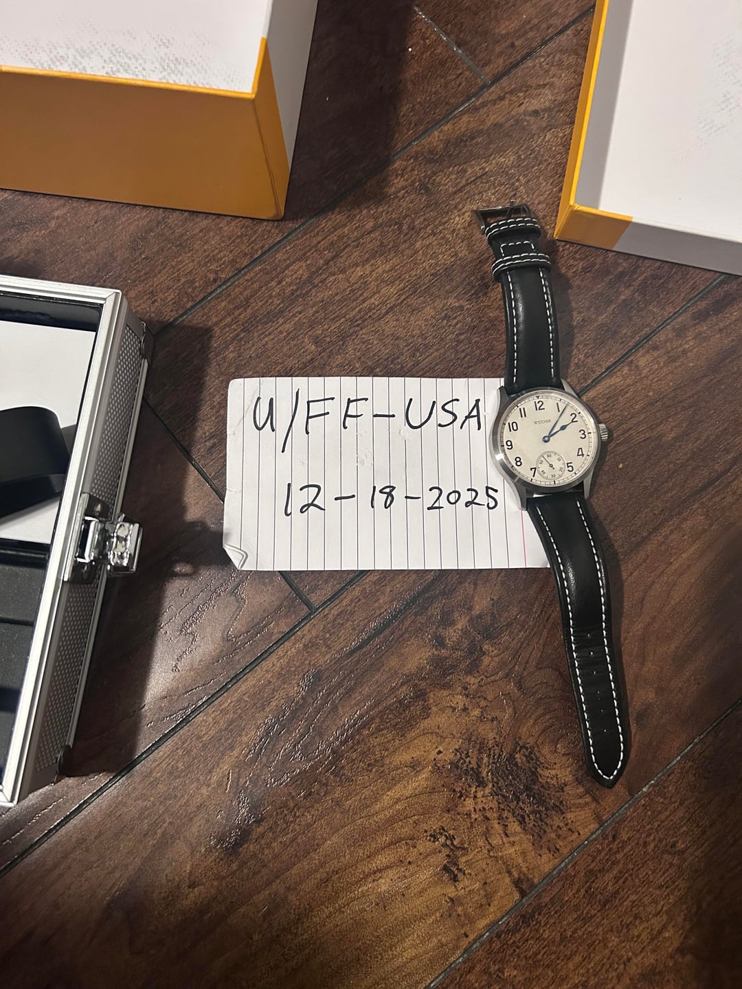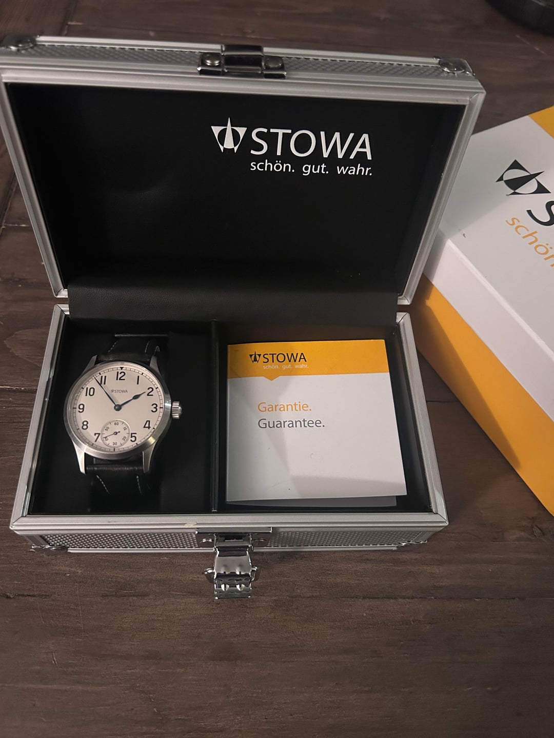Hey everyone, this is my first sale here but I have a well established eBay account and a popular instagram page if anyone wants references. I have worn this Stowa on and off since it was new. It doesn't get much wrist time anymore so l'm letting it go. Beautiful watch that keeps excellent time. ~7 seconds a day if worn and wound every day. There is one very small dent on the left of the case that I can't pick up in the photos. Original box and paperwork. I'll cover FedEx ground shipping in the US. I prefer zelle, I also take venmo, cash app, paypal (friends & family) and Apple Cash.