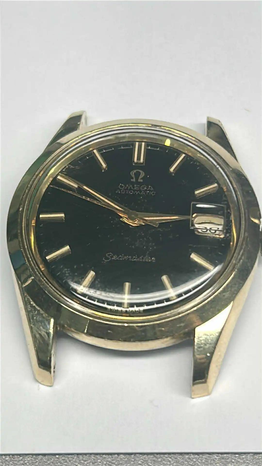 A gold capped Omega 168.010, original black lacquer dial, hands and hour markers have tritium lume, Omega BOR 1502/11 gold plated, serviced, shipping fee with insurance in EU included.