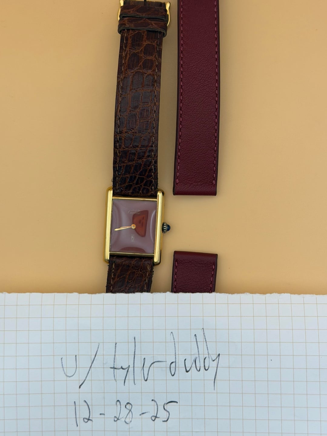 [WTS] Cartier 925 Argent Tank Burgundy Dial Original Strap, Serviced, Custom Strap