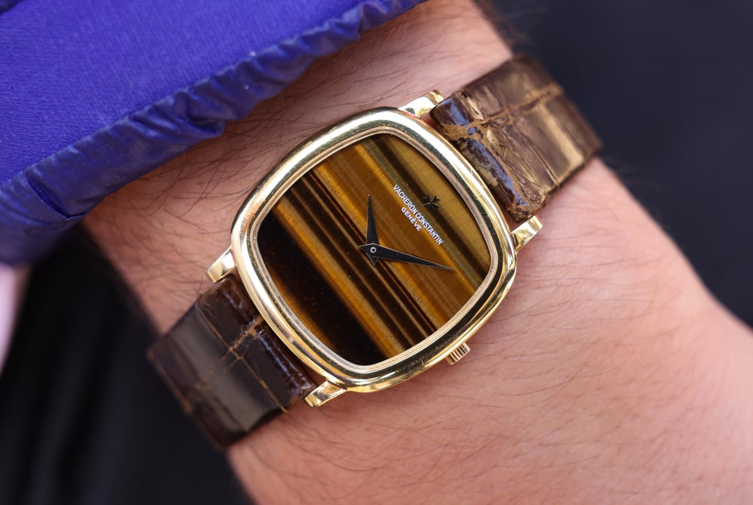 [pics](https://imgur.com/a/VkSfgUY) [timestamp](https://imgur.com/3oDQSN6) Case: Excellent condition 33mm 18K yellow gold case (36mm lug to lug width) with very light wear from use. Dial: Excellent condition Tiger Eye stone dial. There is a hairline crack in the upper left hand quadrant of the dial. Bracelet: Original brown Vacheron Constantin strap/buckle with light wear from use. Accessories: Inner/outer boxes, leather watch roll, booklets, hangtag, 2025 service papers from VC, and original warranty paper. Notes: An incredibly classy 80s VC featuring a rare and beautiful Tiger Eye dial. This one is electric on the wrist, the combination between the yellow gold and the brown tones of the stone dial. Offered at $9,250 shipped. Payment by PayPal F&F, bank wire, or crypto. Located in San Diego, CA. Insured overnight FedEx shipping. International shipping available. Buyers shipping the watch to CA will be required to pay applicable sales tax. Thanks for looking and feel free to message me with any questions!! Hit me up on IG [u/mvvwatches](https://www.reddit.com/user/mvvwatches/) Email: [[email protected]](mailto:[email protected])