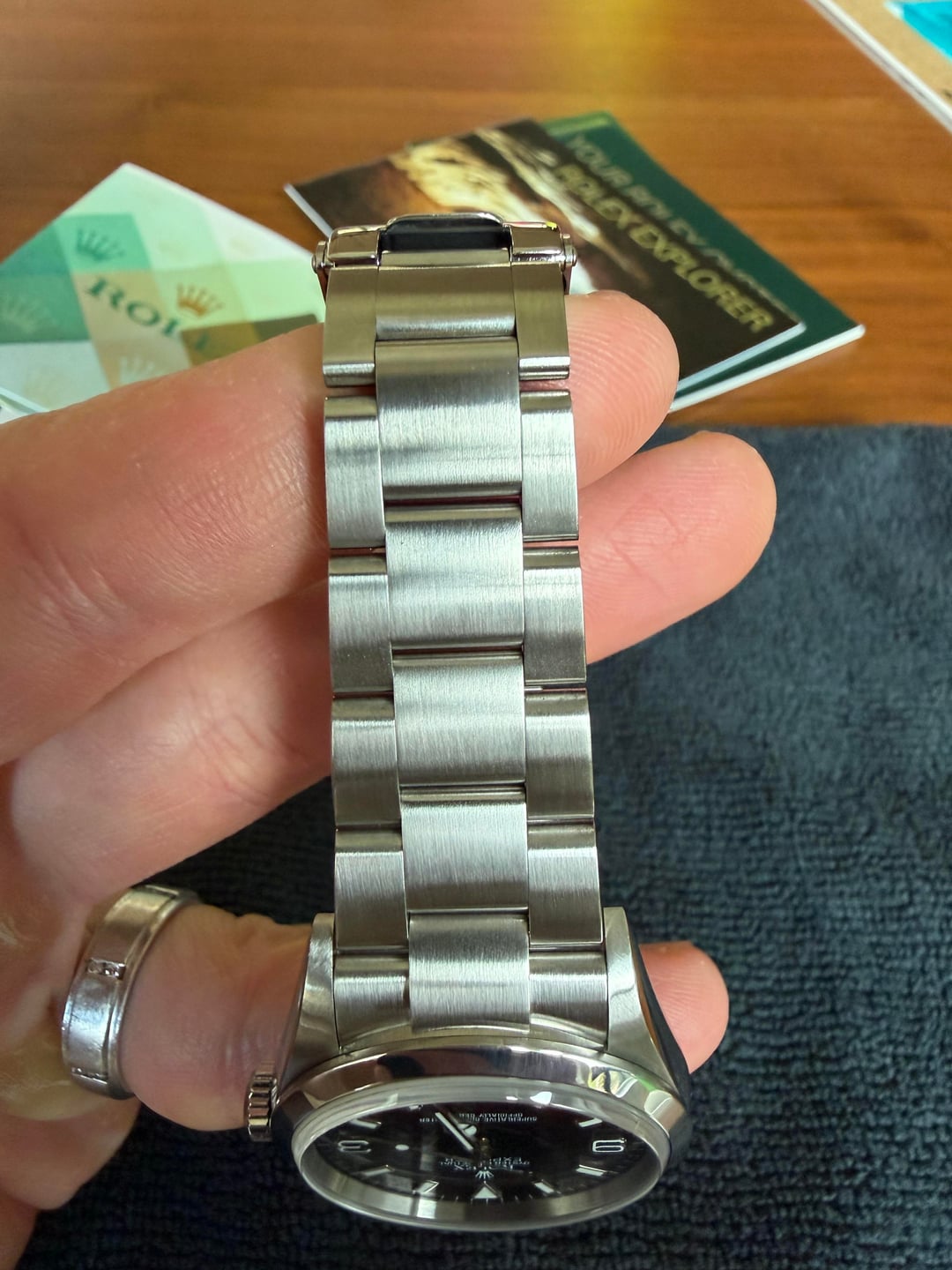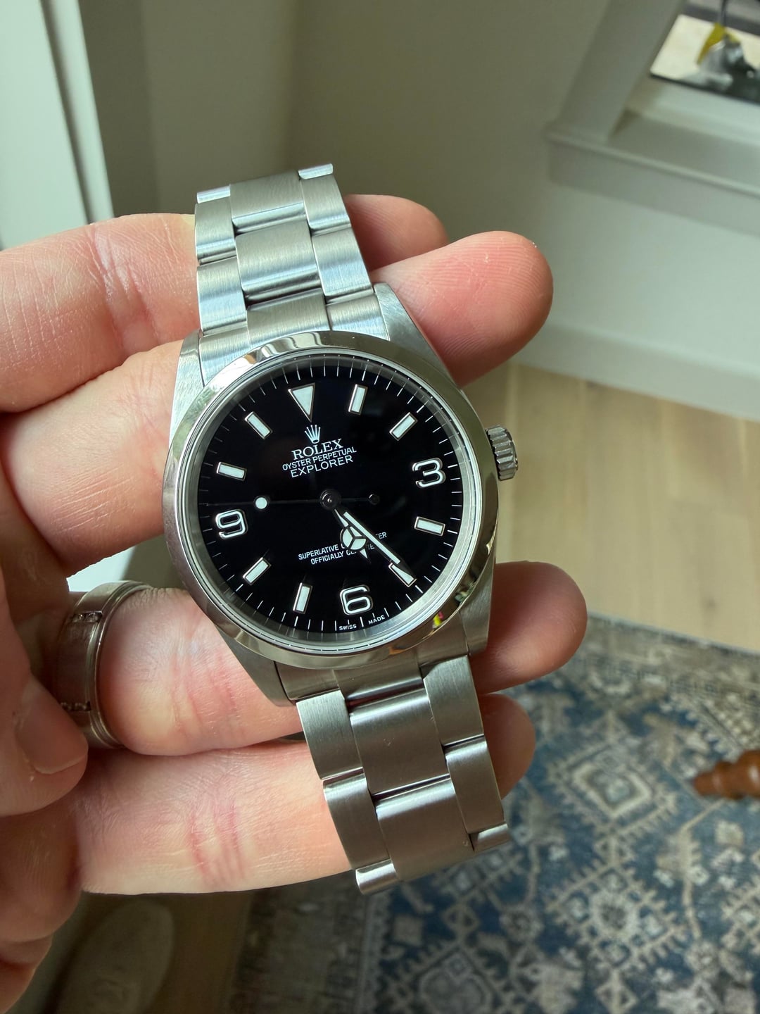 For sale is my Rolex Explorer ref. 114270 (36mm) in mint condition. • Price: $6,199 • Reference: 114270 • Case size: 36mm • Crystal: Sapphire • Movement: Automatic • Bracelet: Oyster bracelet with solid end links • Lume: Super-LumiNova (later 114270) Condition: Watch is in excellent, near-mint condition with no notable scratches or dings. Crystal is flawless. Running strong and keeping great time. Service History: Serviced approximately 18 months ago. What’s Included: • Original Rolex inner & outer boxes • Original warranty papers • Booklets • Hang tag Notes: Classic, understated Rolex that wears incredibly well on almost any wrist. The 36mm Explorer is timeless and increasingly hard to find in this condition as a full set. Payment & Shipping: Wire. Shipping fully insured via FedEx/UPS within the CONUS. Face-to-face available if local. References: Solid feedback available on r/WatchExchange and other platforms upon request. Please feel free to PM with any questions or for additional photos. Thanks for looking.