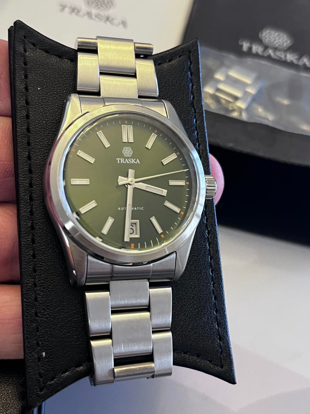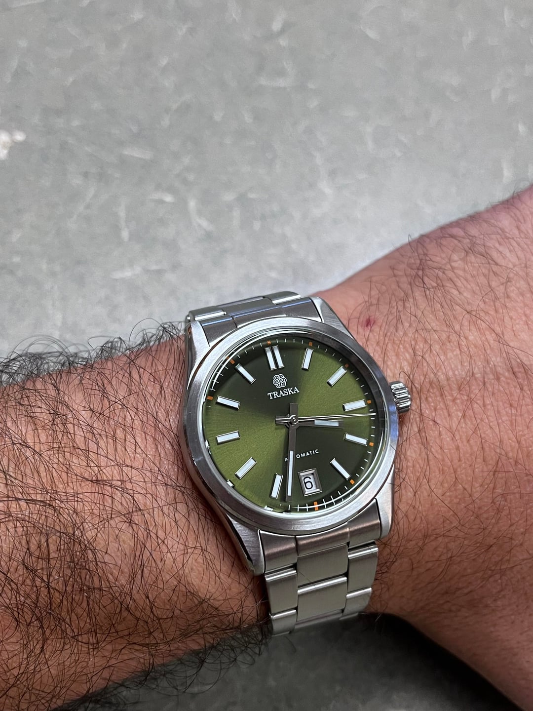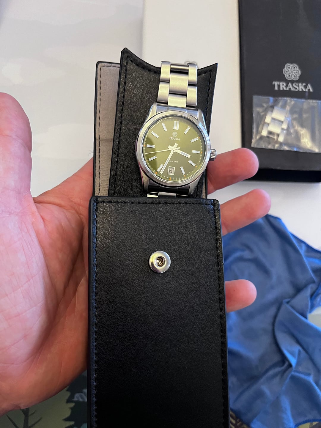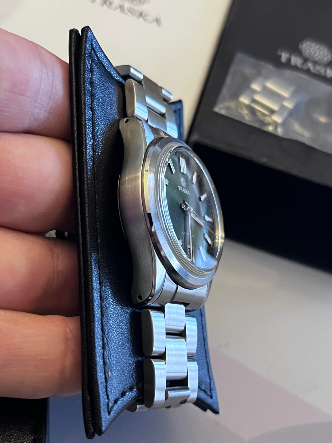 ![[WTS] Traska Commuter Version 1 | Rare Green Dial | 36mm | 4 Micro-Adjust Clasp PRICE REDUCTION $465 7](https://cdn-cf.watchpatrol.net/600x600/img/full/73820811dc0c0b7127e0e4dad7df18258e888205.jpg)