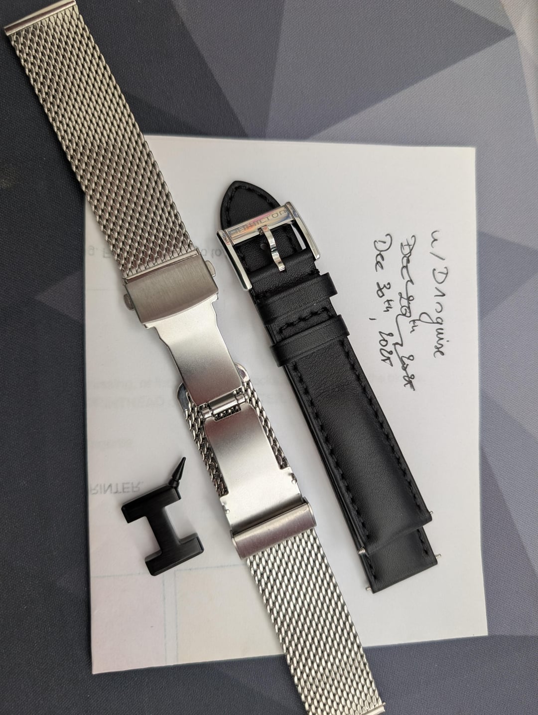 Swore to myself I would never sell this one, but times do change and the poor watch has been sitting in the watch box not getting the love it deserves. I bought this one new, early 2019, and it has been in my collection ever since. It's gotten worn sparingly over that time as part of my rotation, it's a super versatile piece that looks equally good during a fancy dinner or for drinks at the bar down the road. The watch comes with an ostrich leather strap with deployant buckle (pictured), a thick, smooth Milanese strap with foldover clasp and easy sizing, and the original black strap that is still unworn (not even creased from folding yet). The original buckle has been worn on other straps so it has some signs of wear. The watch has some hairline scratches in its high-polished finish, as those are impossible to avoid for more than 30 minutes, but no major wear. The only noteworthy wear is some tiny rash on the top right lug from hitting a door frame by accident. The crystal is fully blemish free. Time keeping is excellent, it runs about -3s/d when I timed it a year ago or so. Inside this beauty resides Hamilton's version of the 7753 Valjoux, but with upgraded power reserve of 70 hours (useful for those weekends), and a quick set date button at 10 o'clock (my Breitling with a 7753-based movement does NOT have this, and it's a killer convenience feature for sure). The watch comes with its original inner and outer boxes, the date setting tool, the original stock strap, the brown ostrich leather strap, and the milanese bracelet. The warranty card is included but was unsigned by the vendor when I purchased it (Jomashop). Regardless, the 2 year manufacturer warranty has since lapsed anyways. Quick specs: 40mm diameter, 20mm lug width, 14.4mm thick. Sapphire crystal with EXCELLENT clear AR coating, screw down crown, crisp pushers, 70 hour PR movement, 28,800bph. 10 bar/100m WR. Free shipping with USPS Priority Mail included in the listing for your convenience, no tricky shipping fees or anything like that for the total price. Asking $1295 or best offer. Payment with PayPal or Venmo. Happy to do PayPal G&S if you cover the 3% fee. Any questions, just ask! The watch is also listed on other platforms for sale, so this listing may be ended early if sold elsewhere.