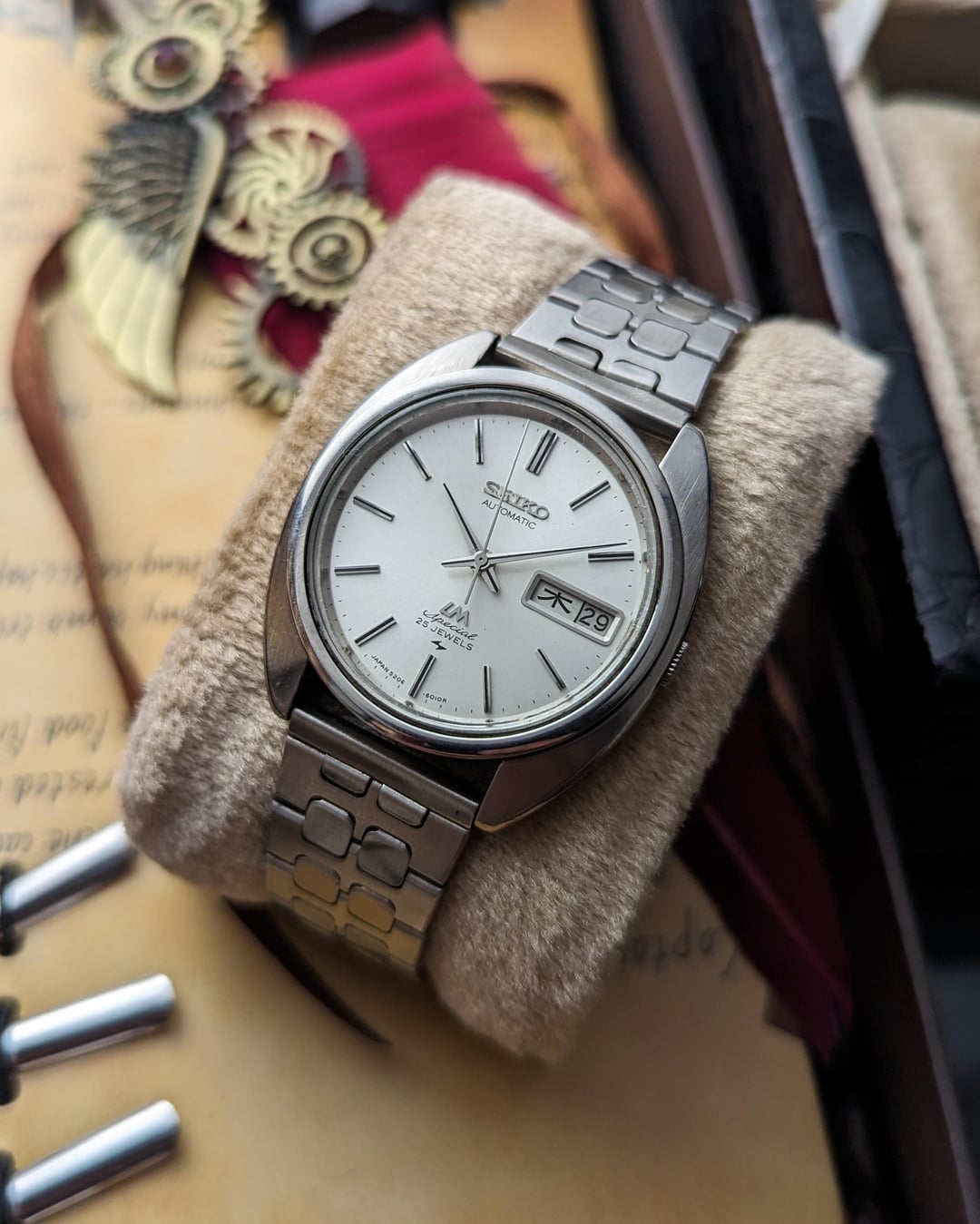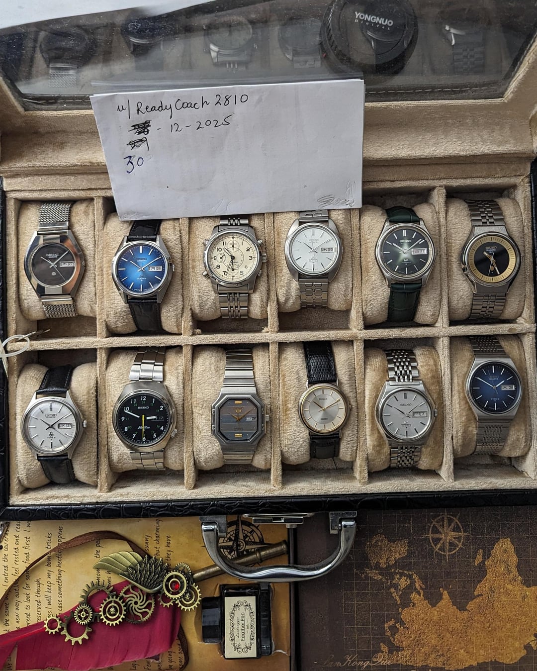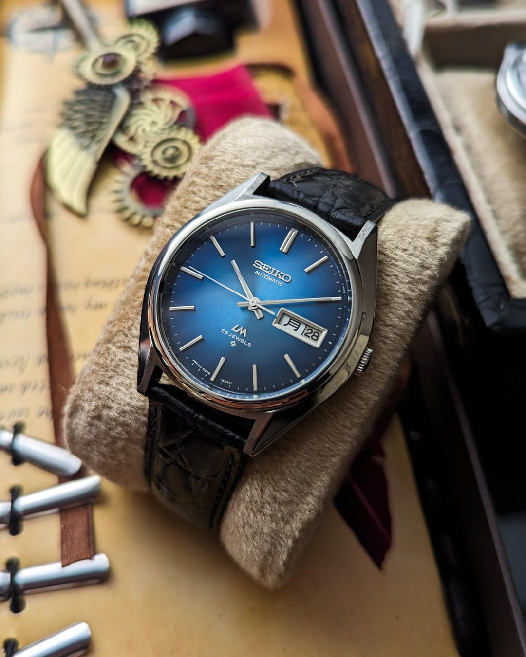 Up for Sale Before the New Year Begins — Greetings, Watchex Family! 🎉 1- Timestamp 2- Seiko LM blue dial 5606 kanji day calendar - $299 3- Seiko dolce round with lizard strap - $139 4- Seiko Type II blue dial kanji day calendar - $169 5- 1977 oct , Seiko Alarm watch $299 6- Seiko LM Special Cushion case 5206 mov kanji day calendar - $269 7- Seiko quartz QZ goldy black jet dial - $265 8- Seiko LM linen dial kanji day calendar with original bracelet - $339 9- Seiko quartz baby GS case kanji day calendar - $155 10-Seiko 5 automatic case like cheap AP watch - $129 11- Seiko LM green dial kanji day calendar - $239 12-Orient quartz kanji day calendar brown marble artistic dial - $99 13- Seiko Silverwave automatic ultra rare kanji day calendar $349 Standard shipping charges are $20