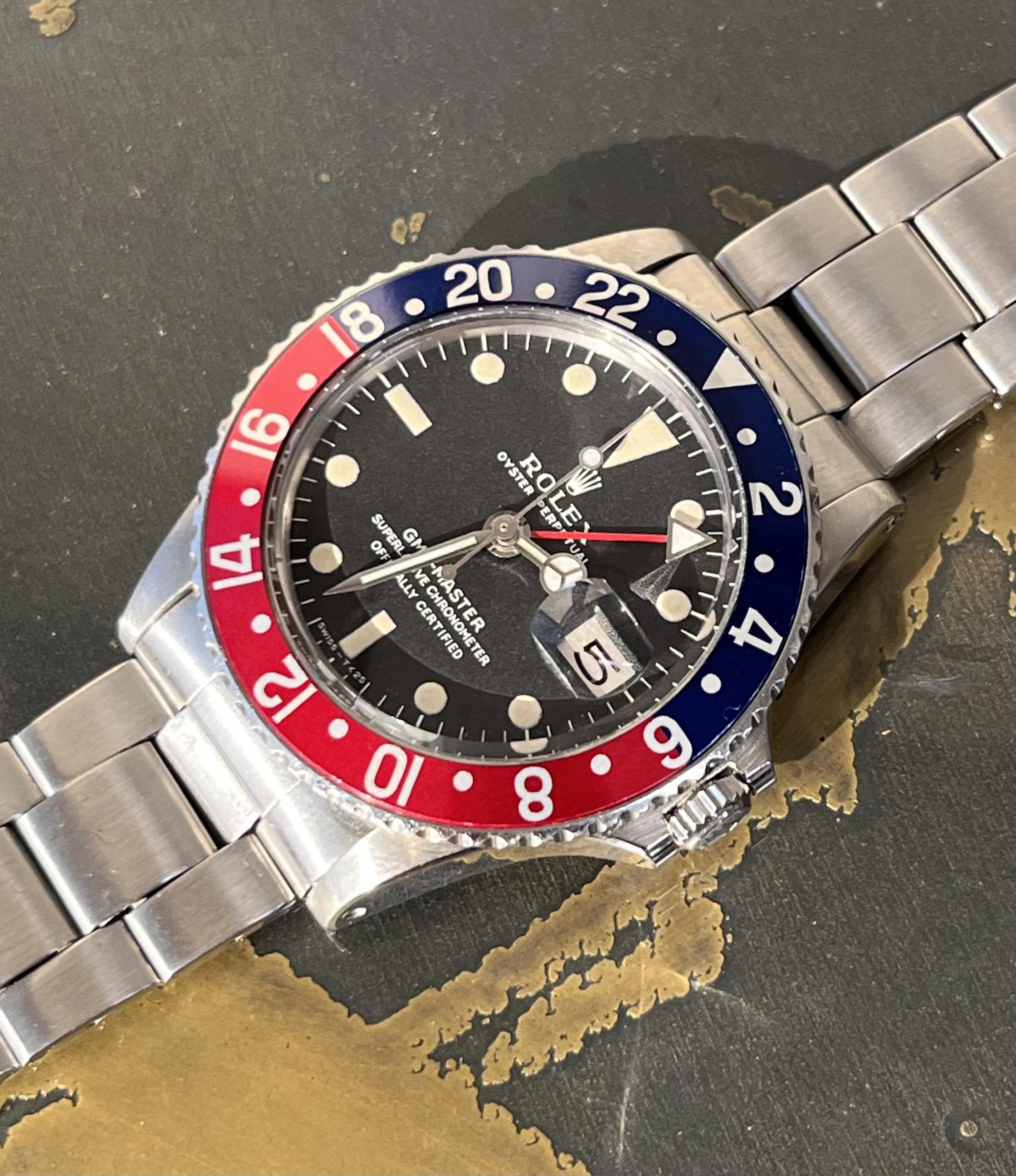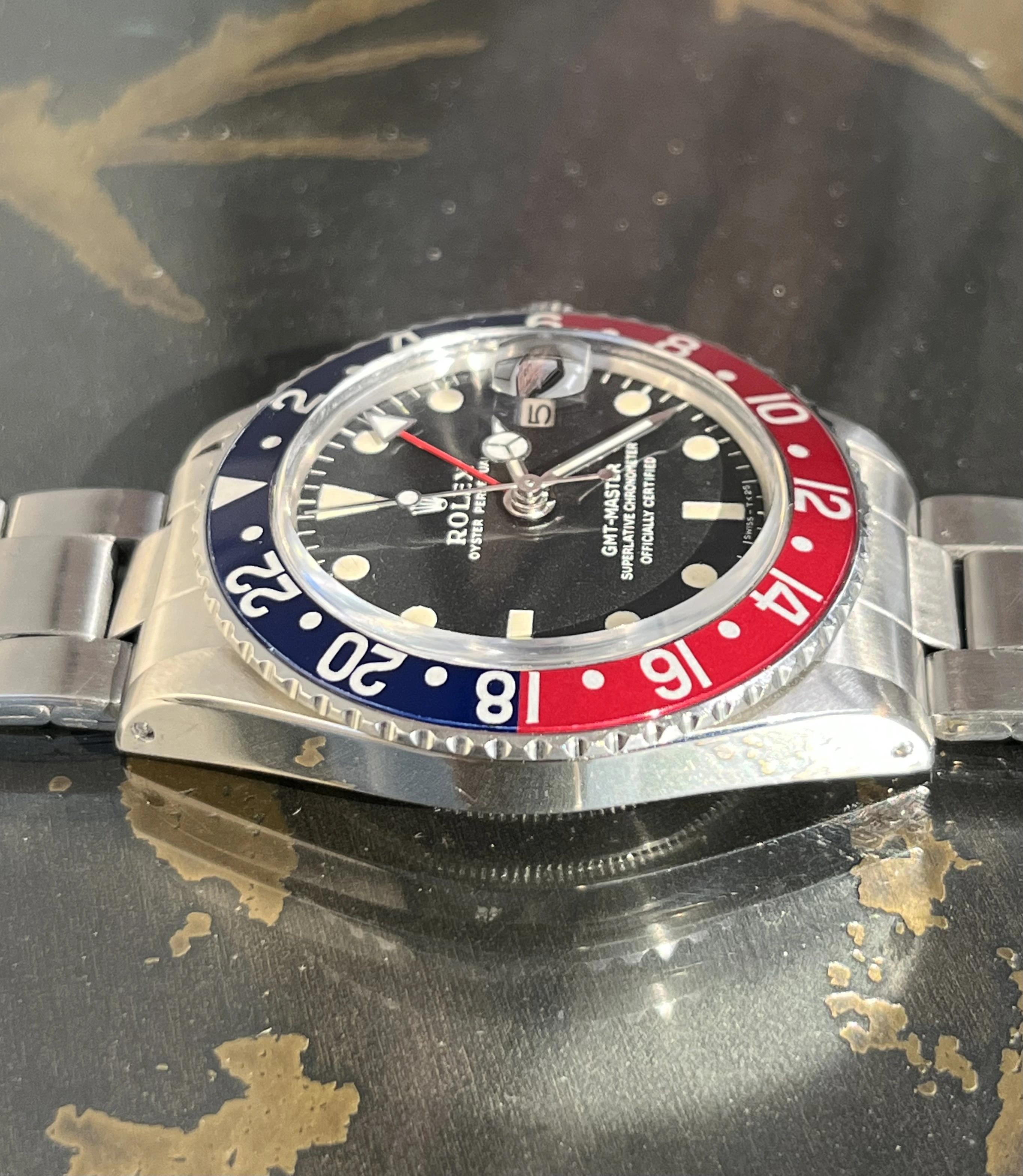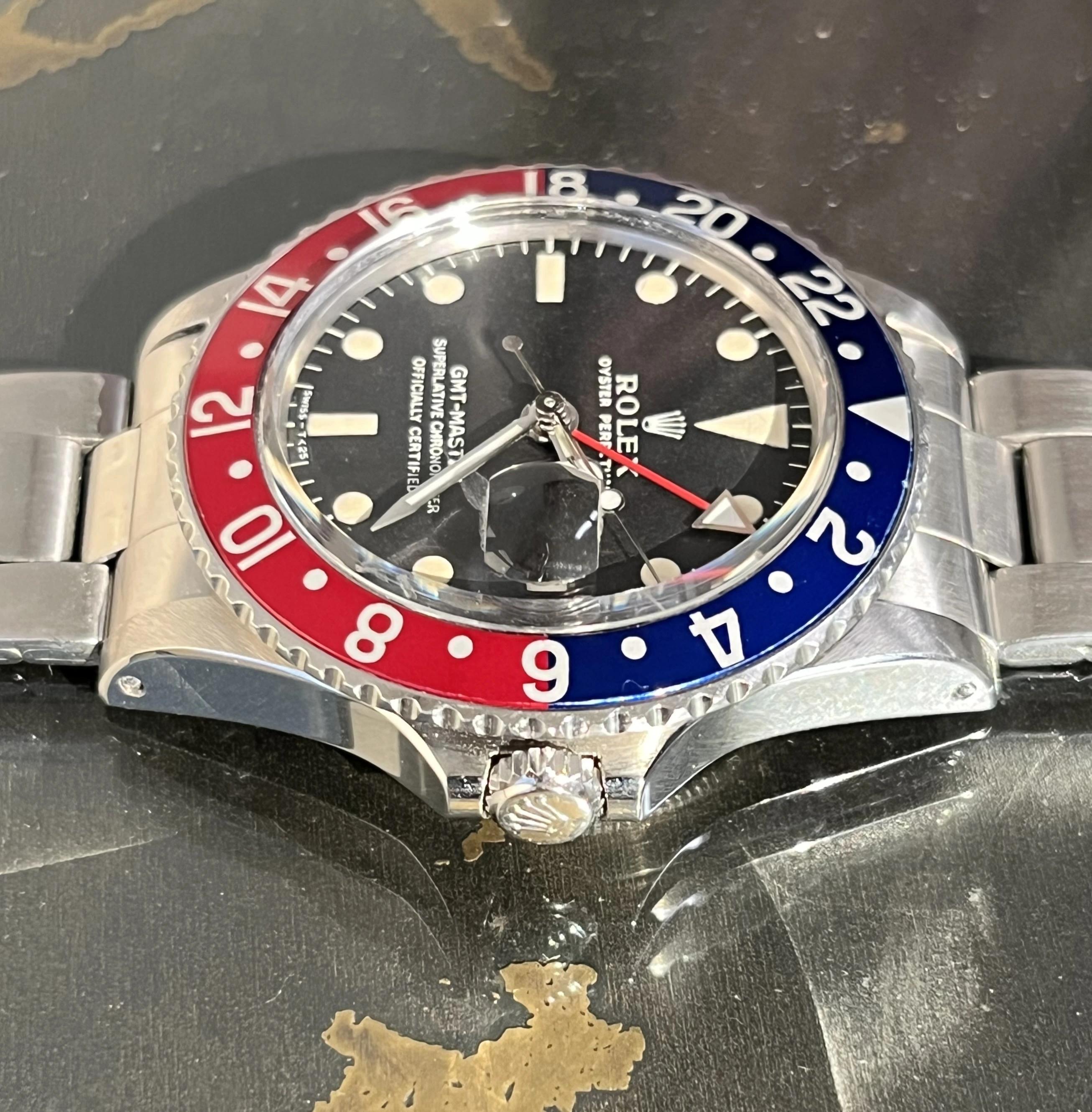 | 1960 Rolex GMT-Master 1675 Stainless Steel Mid Case PCG Gilt Chapter Ring jonahvl (995) |