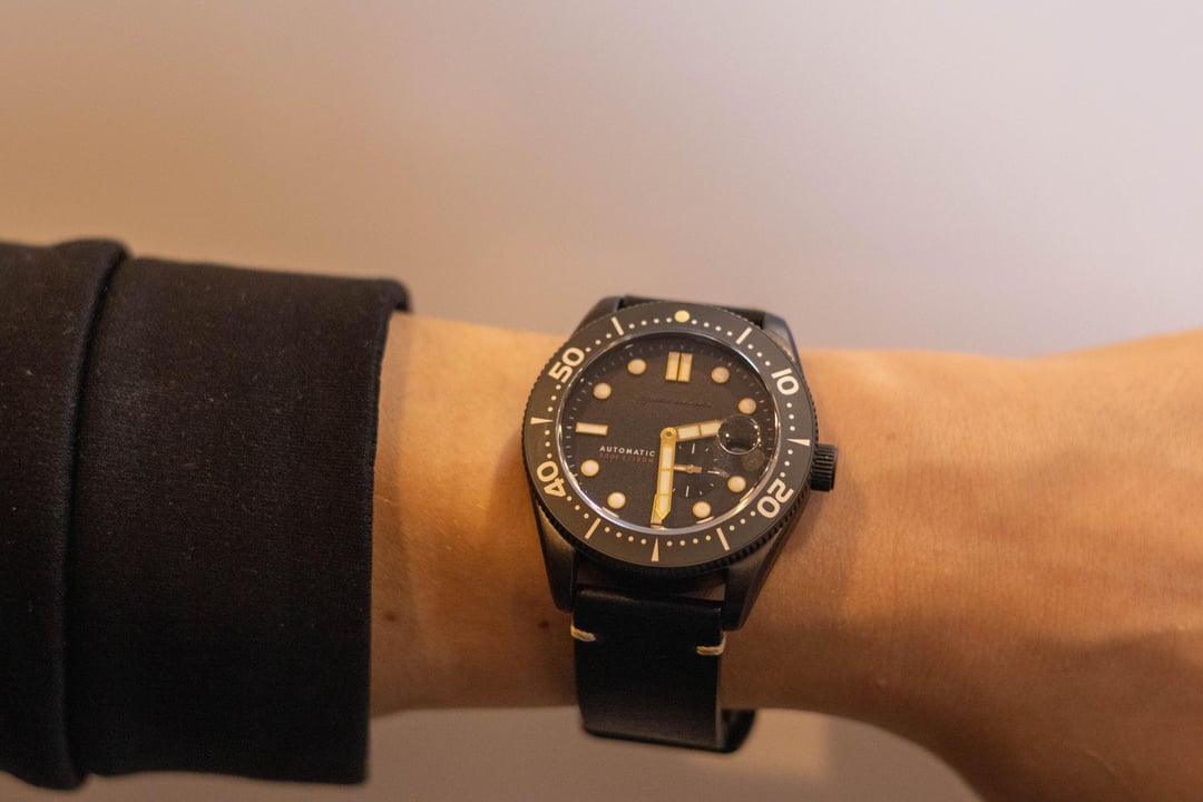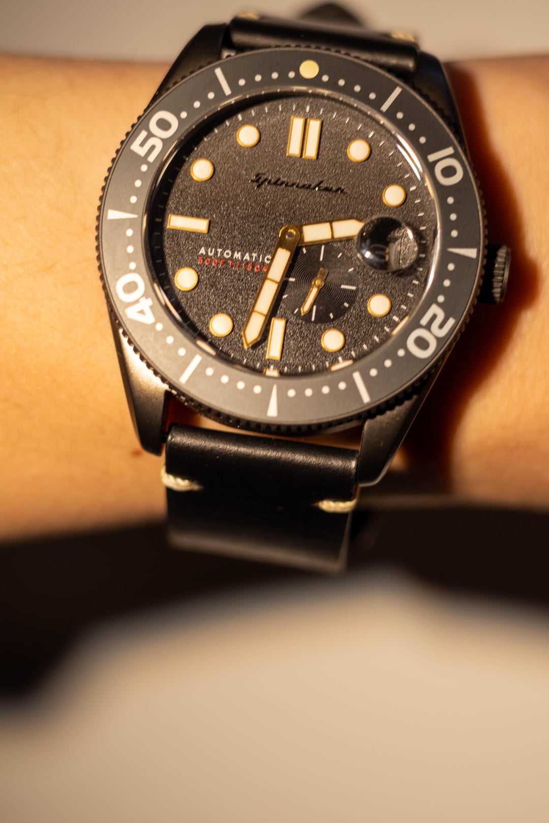 **Price:** $150 Shipped in the US **Condition:** Excellent, only been worn a handful of times with no signs of wear. **Specs:** Case Size 43mm, thickness 14mm, lug to lug 55mm, Sapphire Crystal w/AR Coating, Water Resistance 15ATM, Miyota 8218 Movement, comes in original box. **Website:** [https://spinnaker-watches.com/products/croft-stealth-grey-sp-5058-07](https://spinnaker-watches.com/products/croft-stealth-grey-sp-5058-07)