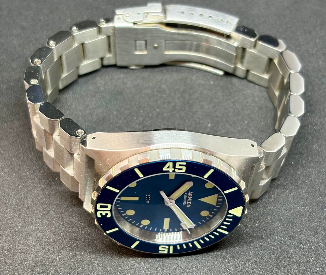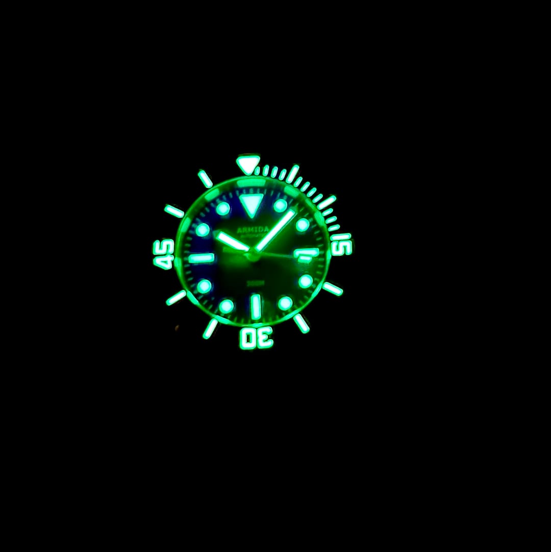 Armida A1 300m Dive Watch 42mm size with Seiko NH35A Movement. 24 Jewels 21.6k bph. The Lume is the star here, there is none better. I have had watches from $150-$17k, I have never seen lume like this. Has a classy glow even in full daylight. Watch has normal wear marks, and desk diving scratches. Everything works perfectly with no issues. I am Pocketkings97 on eBay with 100% feedback. For Payment: PayPal, Venmo, Zelle, Cashapp.