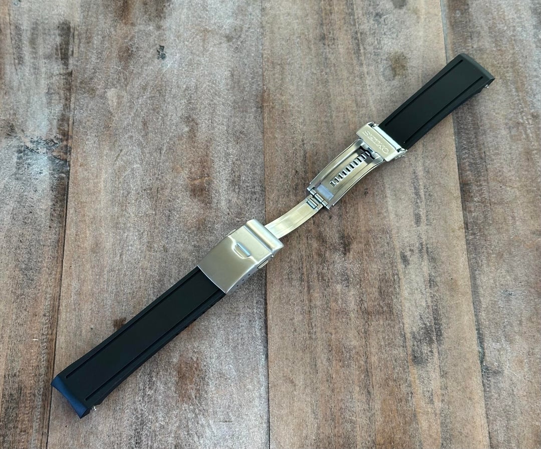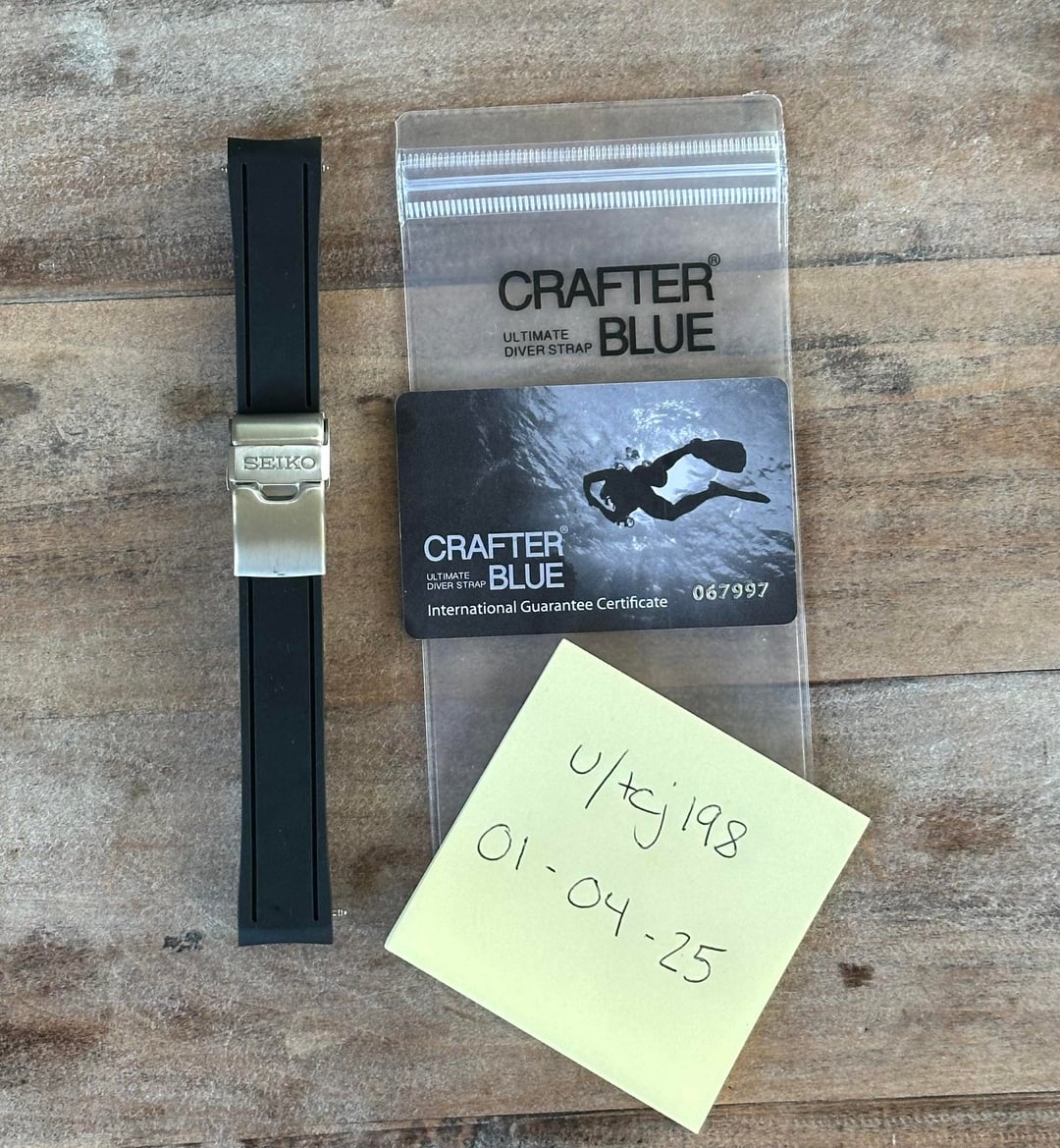 Up for sale is a black Crafter Blue curved-end rubber strap designed for the Seiko MarineMaster 300 lineup, fitted with a genuine Seiko MM300 ratcheting clasp. Both the strap and clasp are in excellent condition. This setup should fit wrists up to approximately 8”. Not interested in selling the strap or clasp separately. Price: Asking $140 shipped Feel free to reach out with any questions. Thanks for looking!