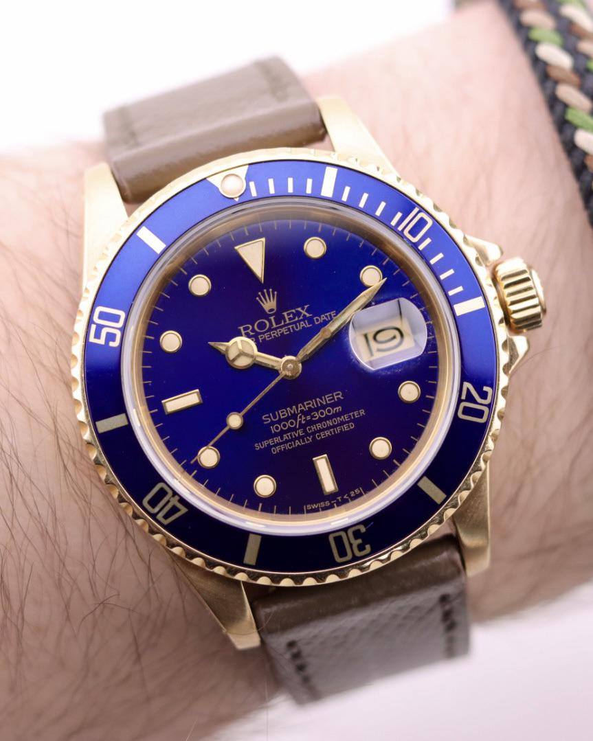 | Rolex Submariner Date 16808, 18K Yellow Gold blue Dial Watch. fathertime_lux (5) |